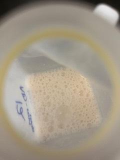 Figure 15. Comparison between one 8 oz bottle frozen and thawed in the freezing chamber (Figure 15A) and one tube frozen in the freezing chamber, and subsequently thawed in the lab fridge and at room temperature (Figure 15B).