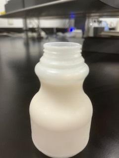 Quantitative data obtained from the experiment followed similar trends from pre- to post-freeze data for all packaging volumes. Because of the consistent trends across all packaging volumes, a particular volume could not be recommended from the quantitative data alone. The decrease in pH may have primarily affected the unfrozen region, in turn changing colloidal interactions between droplets.4 As reflected by the migration of particles toward the bottom portion of the samples (Figures 14-17), the top solids decreased after freezing while the bottom solids increased. This is likely a result of sedimentation, in which the particles had a higher density than the fluid around them.5 Although previous studies have indicated that particle size increases after freezing, the mean particle size only increased for the ½ gallon bottles, while it decreased for the 50 mL centrifuge tubes and the 8 oz plastic bottles.5 This may be because the ½ gallon bottles spent longer freezing and thawing, and a slower freezing rate has been shown to result in a larger increase in mean particle size, whereas faster freezing has only shown a slight increase in particle size.4 Consistent with previous work, the particle size distribution graphs were almost entirely bimodal, in which the two peaks corresponded to the fat droplets and starch