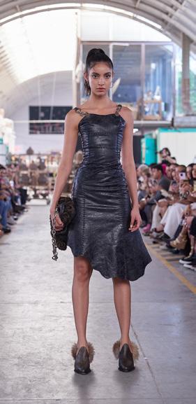 Catwalk shot of the South African model Danielle van Randen at the Sandra Weil show that closed the Fall/Winter 2019 season of Mercedes-Benz Fashion Week Mexico.