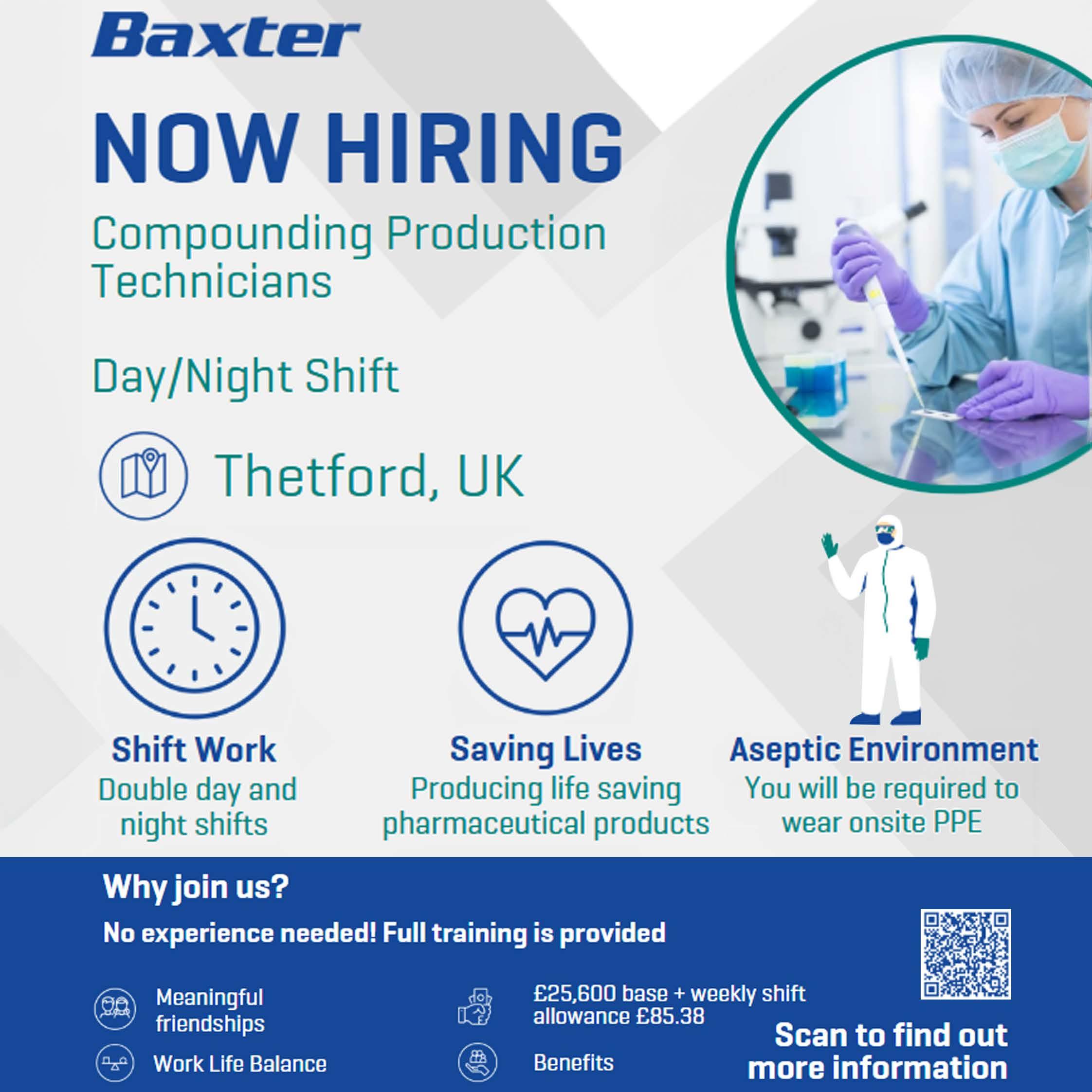 Baxters Thetford produces absolutely millions of IV bags every year. Yes, you read that right, millions! That equates to a staggering output in a day which is a combination of either 0.9% Sodium Chloride solutions (Saline drip), Nutritional compound or Heavy Dextrose bags of various sizes.