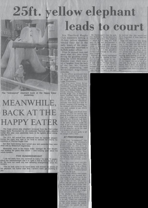 Then, the elephant. Happily, this one is comic and mostly harmless—though the police, the Happy Eater at Red Lodge, and a puzzled manager behind a curtain might disagree. Six of them, a trailer borrowed with a friendly key and a story about picking up paperwork, and a plastic elephant liberated after a recon mission proved it wasn’t bolted. The plan foundered on the bright idea to drive past the base; blue lights arrived, eyebrows raised. “Why didn’t you stand it up?” one officer asked. “We did stand it up,” replied Ronnie’s mate Riggs. “He