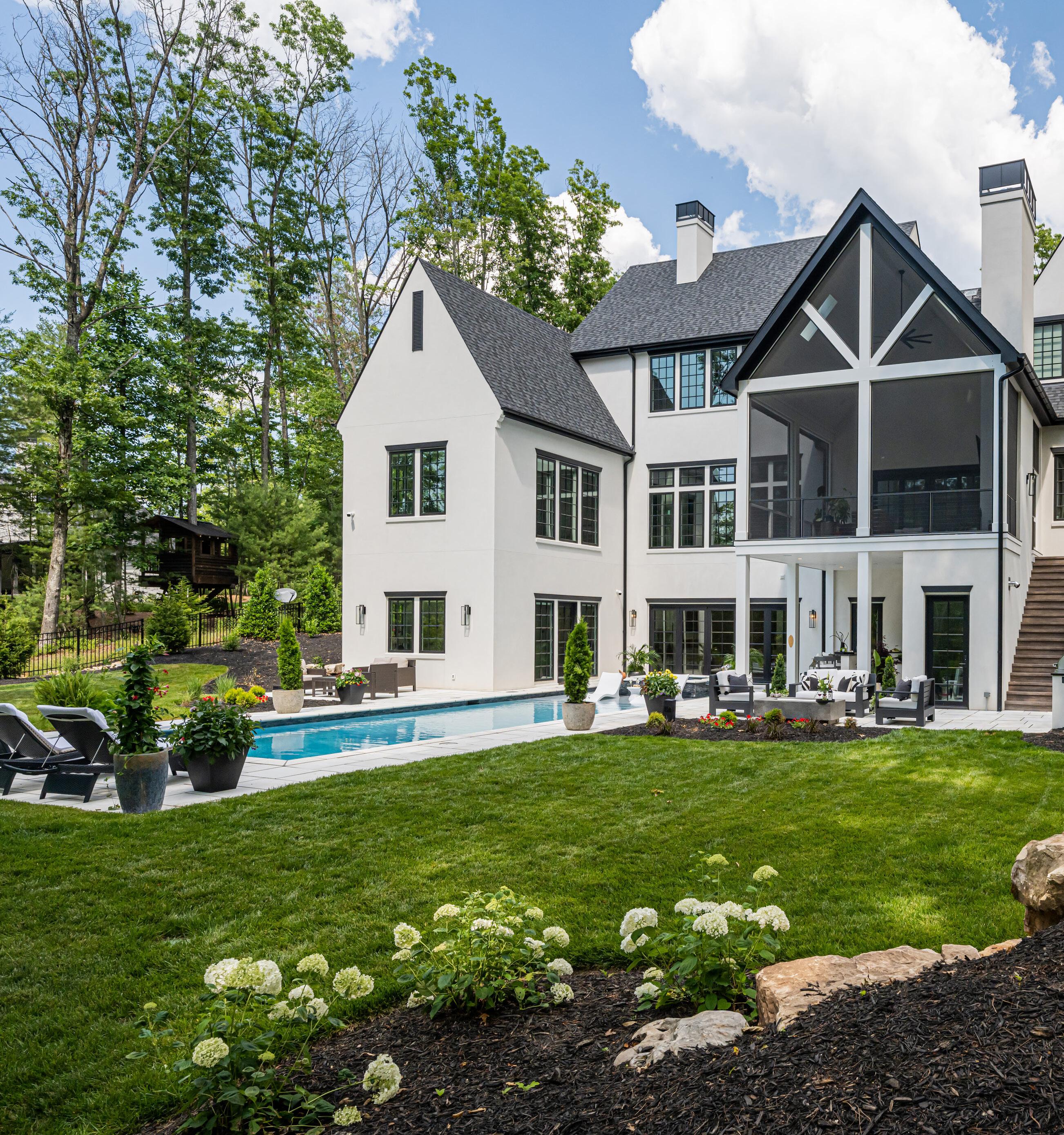 This modern transitional home boasts unparalleled excellence in bespoke elegance and vast entertaining spaces. Here, you’ll find bold, modern design throughout. A marble, T-shaped kitchen island featuring waterfall edging, floating metal staircase, large movie theater and game room, built-in fish tank, in-ground pool and hot tub, screened porch with fireplace and heated floors, and an Owner’s Retreat featuring two closets and a luxurious bathroom are among the most stunning of this home’s exceptional features.