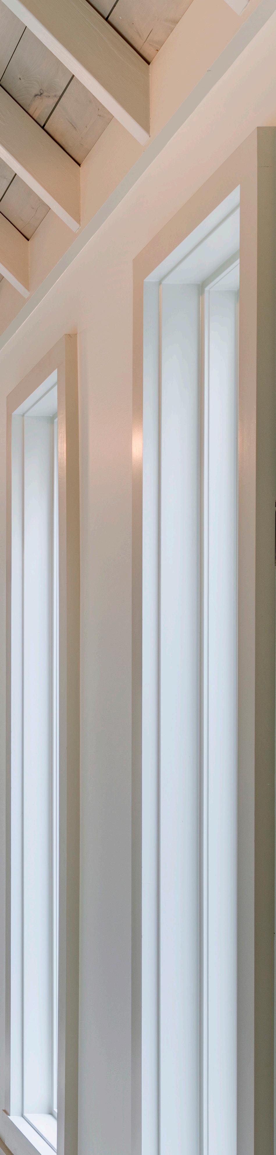 OPPOSITE line with windows placed near the ceiling to draw the eye up, and allow sunlight to stream in.