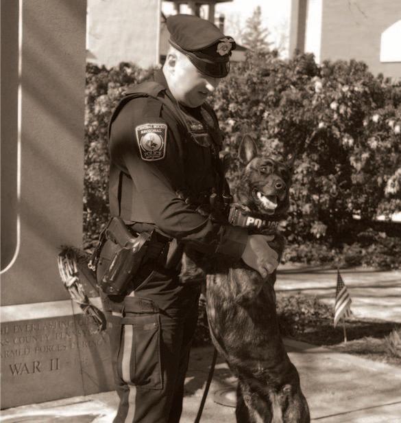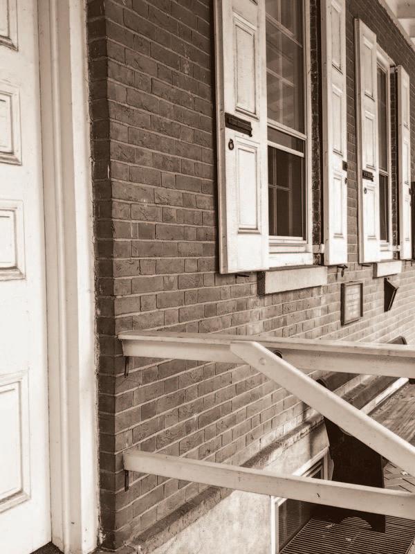 to show something deeper than simply the images themselves. Lisa loved animals, especially dogs and horses and her photos show how much these simple scenes in Doylestown capture something essential about the town she loved and bring us into the heart of its fundamental character. So, scenes like a police officer petting a dog or the art deco doors of the County Theatre teach us something about Doylestown’s heart that words and even color never could.