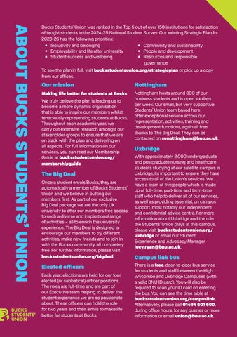 Welcome to Bucks Students’ Union. We are a dynamic and forward thinking organisation and truly believe in ‘making life better for students at Bucks’. We are passionate about the student experience and want to make your time at university as enjoyable and rewarding as possible. We really believe that students should always come first and that your time at Bucks should be a life changing experience and the best fun you have ever had.