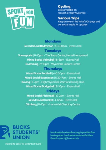 Times range (for more information, contact sport@bucks.ac.uk)