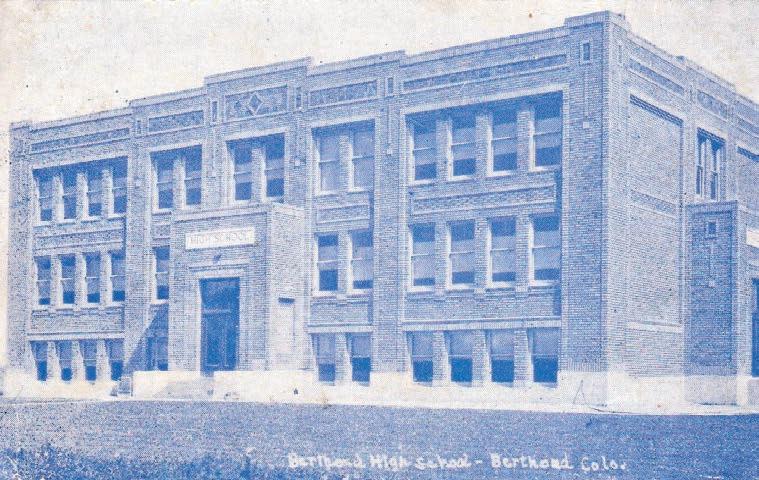 When Berthoud schools open this fall it will mark 100 years since the community’s junior and high school students began classes in the new school building (no longer standing) erected at the northwest corner of Ninth Street and Massachusetts Avenue. That site — presently occupied by Turner Middle School — was the location of erthoud’s first unior-senior high school, a buildTales of the ing constructed by local contractor John A. Bell for the Little Thompson for cost 8 , 8 . . The unior high school consisted of grades 7 and 8 with the high school made up of students in grades through . According to Berthoud historian Helen McCarty Fickel when Bell was building the school he was also constructing a craftsman-style bungalow for his family at 908 Mountain Ave. When Bell overran his school budget he made good on the contract, absorbed the losses, halted construction of his dwelling and moved into the basement of the unfinished house until he was able to finish. ell’s brick bungalow presently houses Mark French Surveyor Columnist The Cottage Realty. efore the erthoud unior-Senior High School building was built at the northwest corner of Ninth Street and assachusetts Avenue in , first through twelfth-grade students living in erthoud attended classes in a two-story, red-brick school building located in the center of present-day ickel Park. The east half of the building had been built in 1897. A mirror addition that was the west half of the school was constructed in 1908.