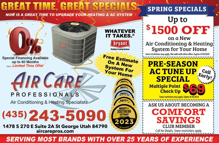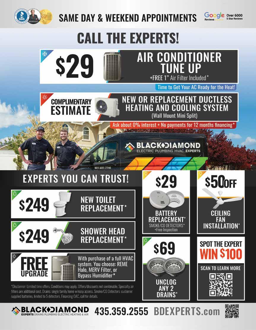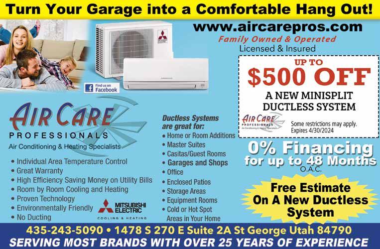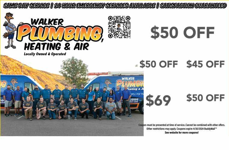 Advertise with Buddy Mail Magazine | (435) 633-9099 | www.BuddyMailAdvertising.com | April 2024 • St. George 10 $50 OFF Kitchen Plumbing Sink, Faucet or Garbage Disposal $45 OFF Air Duct Cleaning $50 OFF AC System or Furnace Repair $69 Drain Cleaning & Camera Inspection