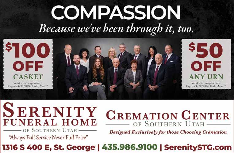Advertise with Buddy Mail Magazine | (435) 633-9099 | www.BuddyMailAdvertising.com | April 2024 • St. George 12