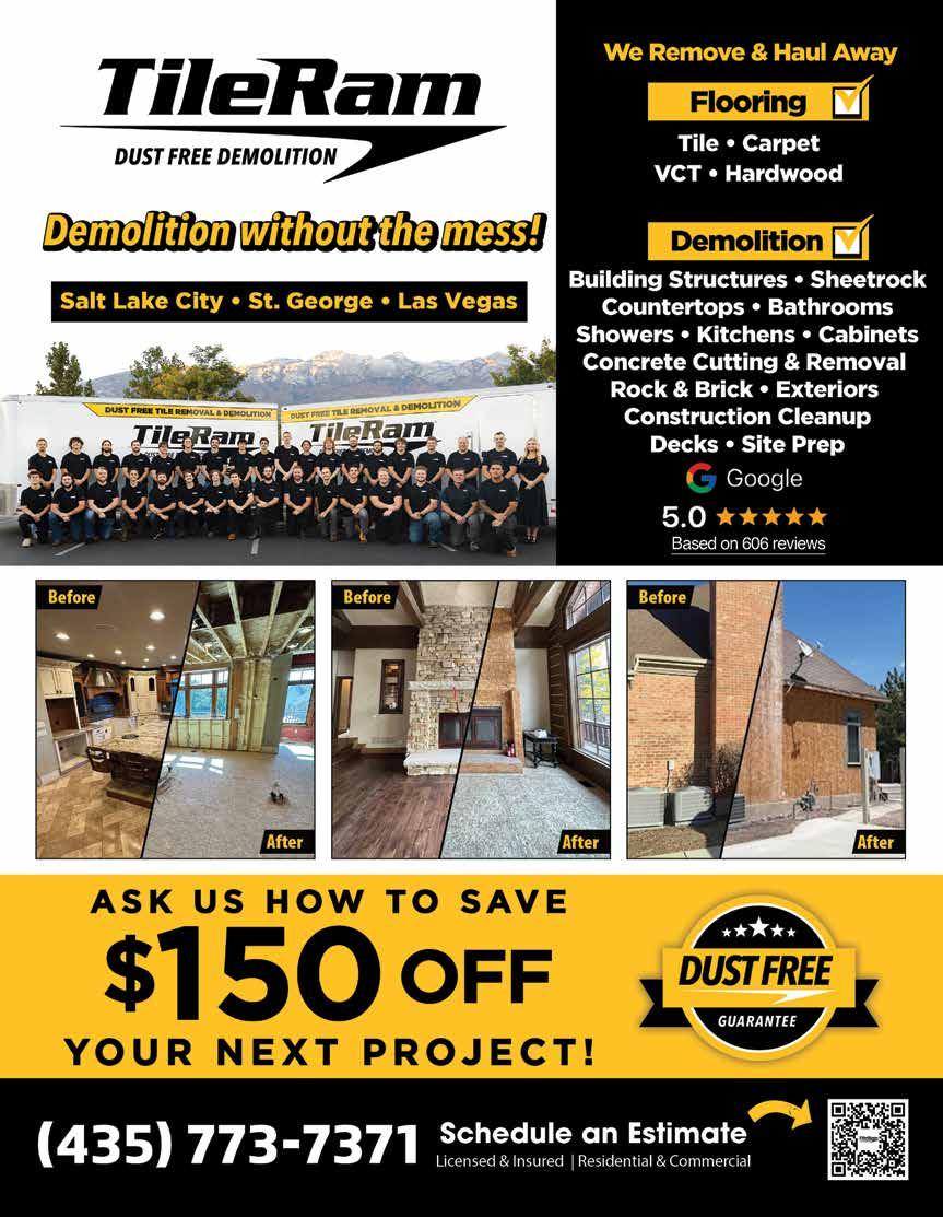 Advertise with Buddy Mail Magazine | (435) 633-9099 | www.BuddyMailAdvertising.com | April 2024 • St. George 3 Spring Cleaning Just Got Easier! Commercial Services Spots Fill Quickly, So Book Your Removal Today! Always FREE Estimates! • Appliances • Furniture • Hot Tub Removal • Electronics • Rock Delivery • Light Demolition 435-414-9707 OFF Valid with coupon only. Expires 5/15/2024 All Junk Removal Services YeeHaulTrashRemoval.com