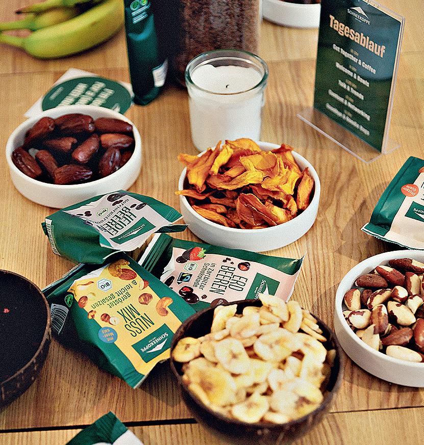 Ich greife gerne auf gesunde Optionen wie Nüsse oder eine Banane zurück.