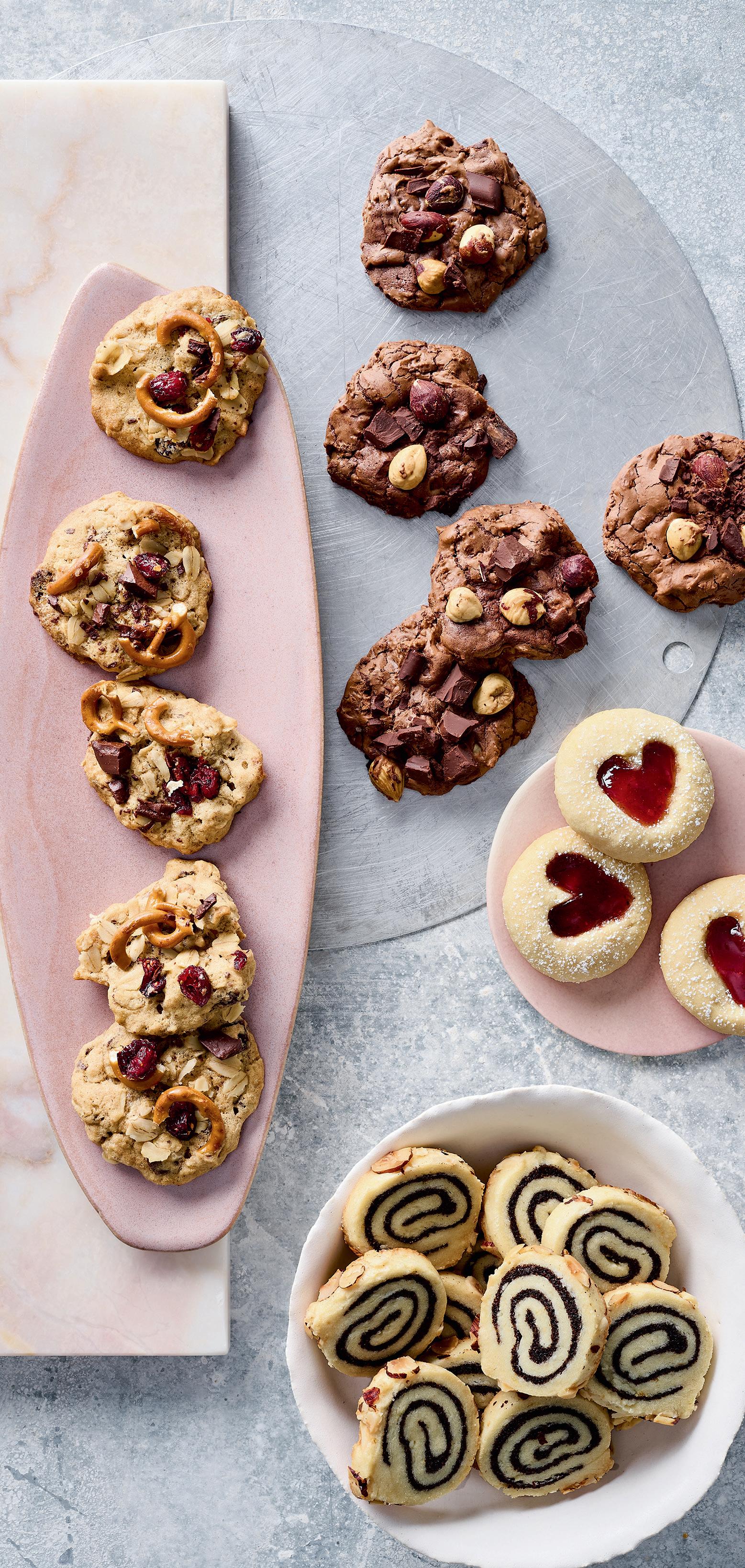 4 Im heißen Ofen auf der mittleren Schiene 10–12 Minuten backen. Auf den Blechen abkühlen lassen. In einer fest schließenden Dose lagern. Haltbarkeit: ca. 4 Wochen.