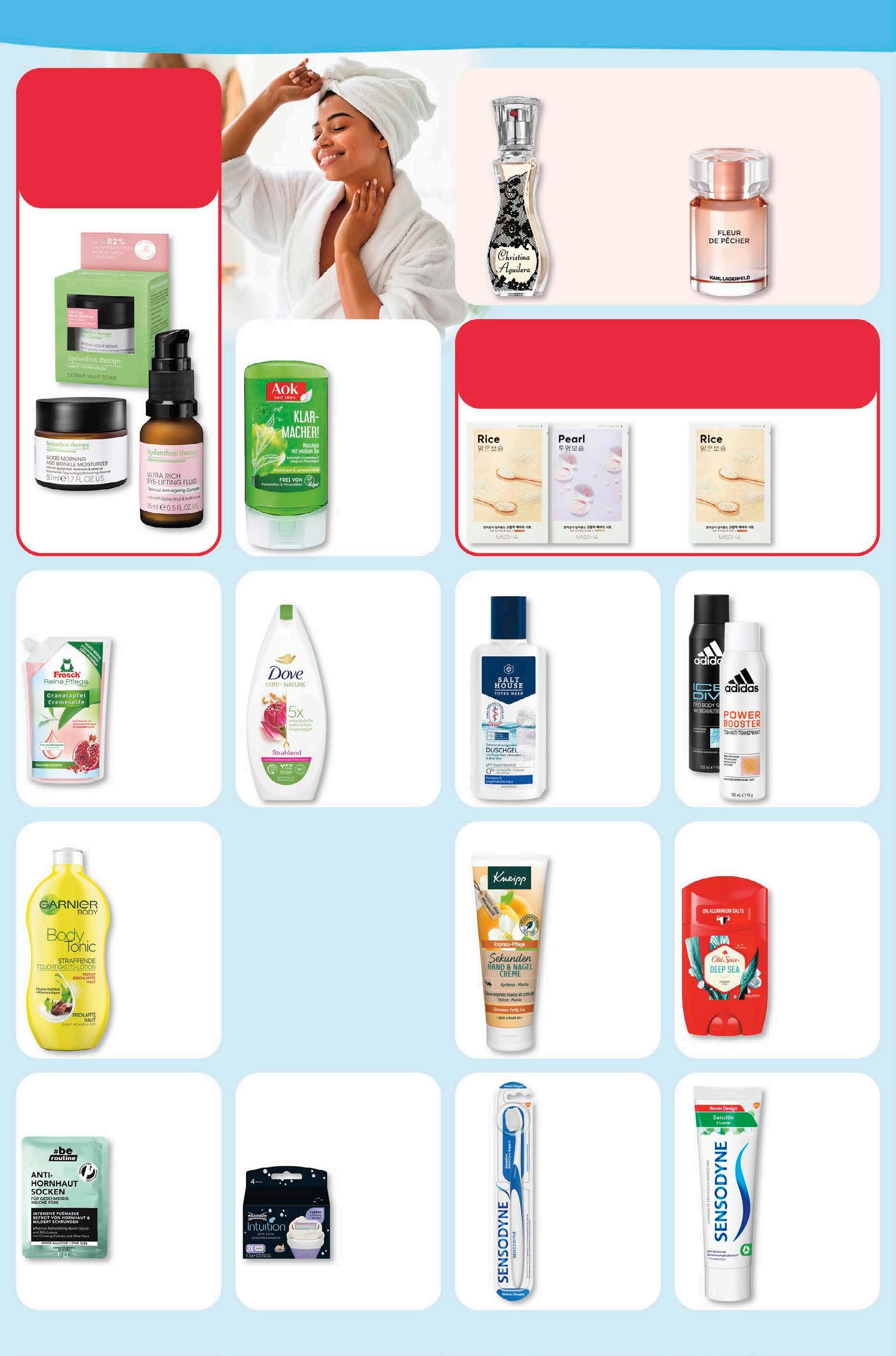 Abgabe in haushaltsüblichen Mengen. pflege & frische Garnier Body Tonic Bodylotion 400 ml 1 l = 9,98 3,99 -20% UVP 4,99 Aok Waschgel 150 ml 1 l = 12,60 1,89 -37% UVP 2,99 Sensodyne Sensitive Zahnbürste Stück 2,99 -21% UVP 3,79 Sensodyne Fluorid Zahncreme versch. Sorten 75 ml 1 l = 26,53 1,99 -29% UVP 2,79 Wilkinson Intuition Rasierklingen versch. Sorten 3 Stück 8,95 -19% UVP 10,99 Salthouse Totes Meer Duschgel vegan 250 ml 1 l = 11,96 2,99 -25% UVP 3,99 b.e. Routine Fußmaske Socken vegan Paar 4,44 -26% UVP 5,99 Kneipp SekundenHandcreme versch. Sorten 75 ml 1 l = 26,53 1,99 -33% UVP 2,99 Frosch Flüssigseife versch. Sorten 500 ml 1 l = 3,90 1,95 -22% UVP 2,49 Adidas Deo Spray versch. Sorten 150 ml 1 l = 18,60 2,79 -15% UVP 3,29 20% rabatt auf alle artikel von spilanthox. Old Spice Deo Stick versch. Sorten 50 ml 1 l = 55,80 2,79 -26% UVP 3,79 Christina Aguilera Signature Eau de Parfum 15 ml 8,99 -36% UVP 13,99 Karl Lagerfeld Fleur de Pêcher Eau de Parfum 50 ml 14,99 -45% UVP 27,50 Dove Care by Nature Duschgel versch. Sorten 225 ml 1 l = 10,18 2,29 aktion 3 für 2 entspr./stück 1,33 1 kg = 70,00 über 1.100 produkte zu discountpreisen! gratis + Missha Airy Fit Tuchmaske versch. Sorten 19 g Einzelpreis 1,99 1 kg = 104,74