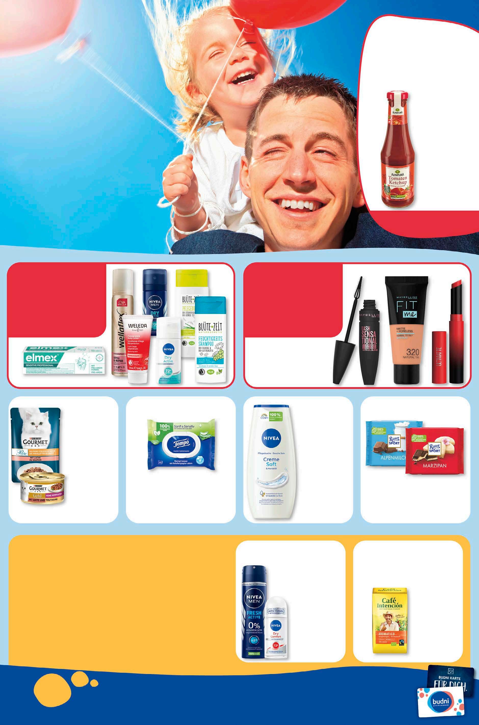 Gültig vom 10.07. bis 15.07.2023 Solange der Vorrat reicht. Irrtümer vorbehalten. Abgabe in haushaltsüblichen Mengen. KW 28 Noch keine budni-karte? Dann schnell in der App, auf budni.de oder in Deinem budni registrieren. punkte sammeln und sparen sowie täglich deine persönlichen angebote am service-punkt und in der budni-app entdecken. Alnatura Tomaten Ketchup 500 ml 1 l = 3,98 1,99 -13% UVP 2,29 Nivea Deo Spray oder Roll-On versch. Sorten 150/50 ml 1 l = 13,27/39,80 1,99 -20% UVP 2,49 Mehr attraktive AlnaturaAngebote auf Seite 6. wir feiern, du sparst! Nivea Duschgel versch. Sorten 250 ml 1 l = 6,76 1,69 -15% UVP 1,99 Tempo Feuchtes Toilettenpapier versch. Sorten 42 Stück 1,29 -28% UVP 1,79 Gourmet Gold Duo oder Perle Katzennahrung versch. Sorten 85 g 1 kg = 5,76 0,49 aktion exklusiv mit budni-karte budni-app öffnen und Angebote abrufen oder budni-karte am Service-Punkt scannen und Sparschein ziehen. 1 Angebotsartikel mit zur Kasse nehmen. 2 budni-karte an der Kasse scannen und Rabatt er halten. 3 10% rabatt auf alle reisegrößen. 20% rabatt auf alle artikel von Café Intención Aromatico gemahlen vegan 500 g 1 kg = 12,98 6,49 -28% UVP 8,99 max. 8 Packungen Ritter Sport Bunte Vielfalt versch. Sorten 100 g 1 kg = 7,90 0,79 -47% UVP 1,49