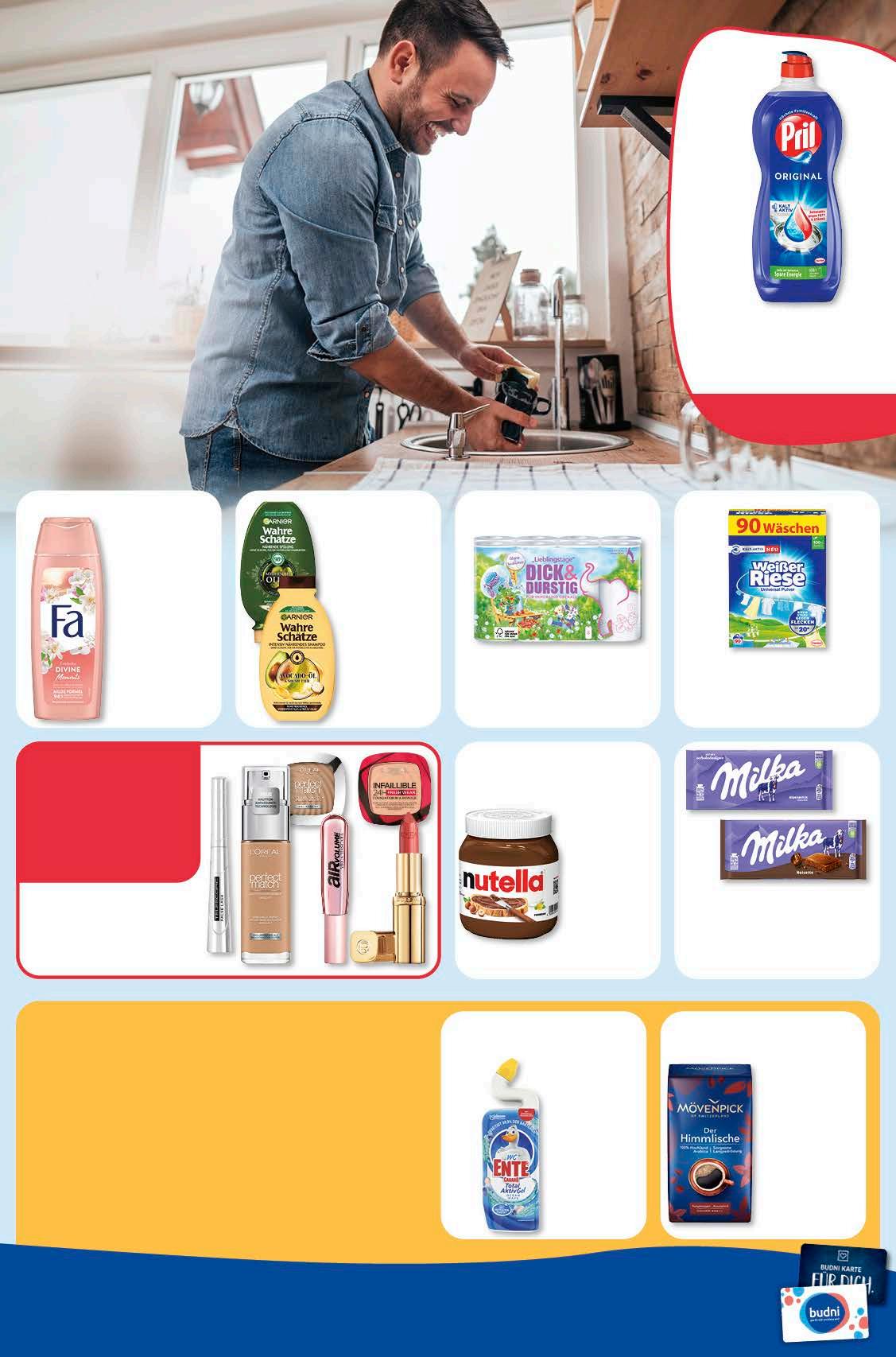 Fa Duschgel versch. Sorten vegan 250 ml 1 l = 4,44 1,11 -30% UVP 1,59 Garnier Wahre Schätze Shampoo oder Spülung versch. Sorten 250/200 ml 1 l = 7,96/9,95 1,99 -29% UVP 2,79 Dick & Durstig Haushaltstücher 2-lagig 8x 45 Blatt 3,99 -41% UVP 6,79 Weißer Riese Waschmittel versch. Sorten 90 WL 1 WL = 0,14 12,99 -18% UVP 15,79 Pril Spülmittel versch. Sorten 675 ml 1 l = 1,91 1,29 -32% UVP 1,89 Mehr tolle Angebote für Deinen Haushalt auf Seite 4. Milka Schokolade versch. Sorten 100 g 1 kg = 6,90 0,69 -49% UVP 1,35 max. 8 Flaschen max. 3 Packungen WC-Ente Total Aktiv Gel1 versch. Sorten 750 ml 1 l = 2,39 1,79 -28% UVP 2,49 1 Biozidprodukte vorsichtig verwenden. Vor Gebrauch stets Etikett und Produktinformation lesen. Mövenpick Kaffee Der Himmlische versch. Sorten 500 g 1 kg = 9,98 4,99 -38% UVP 7,99 max. 8 Packungen
