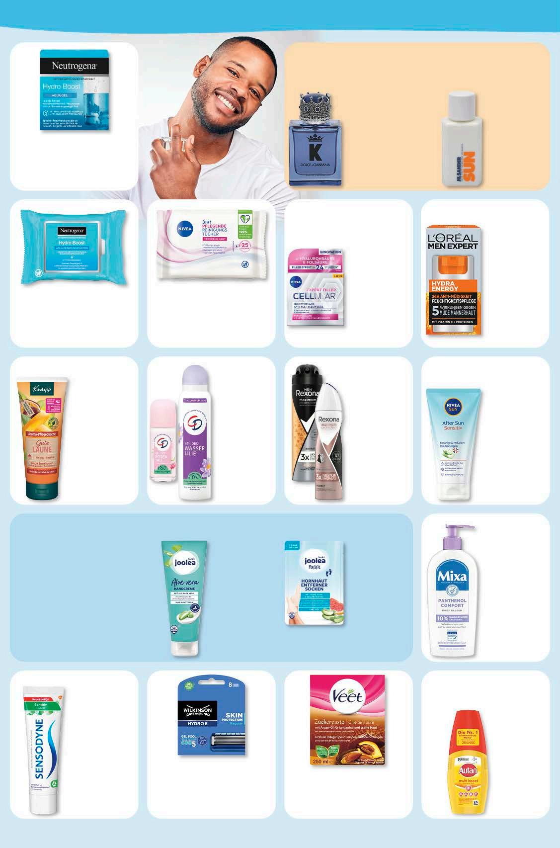Abgabe in haushaltsüblichen Mengen. pflege & frische Dolce & Gabbana K for Men Eau de Parfum 50 ml 44,44 -49% UVP 87,00 budni marke Joolea Handcreme versch. Sorten vegan 125 ml 1 l = 9,20 1,15 Nivea Cellular Expert Tagespflege versch. Sorten 50 ml 1 l = 259,80 12,99 -30% UVP 18,49 Nivea Sun After Sun Sensitiv 175 ml 1 l = 28,29 4,95 -10% UVP 5,49 Mixa Bodylotion oder -milk versch. Sorten 250 ml 1 l = 13,96 3,49 -13% UVP 3,99 Sensodyne Sensitiv Fluorid Zahncreme versch. Sorten 75 ml 1 l = 29,60 2,22 -20% UVP 2,79 Wilkinson Hydro 5 Skin Protection Rasierklingen 8 Stück 14,99 -32% UVP 21,99 Kneipp Aroma Pflegedusche versch. Sorten 200 ml 1 l = 13,45 2,69 -33% UVP 3,99 Rexona Deo Spray Maximum Protection versch. Sorten 150 ml 1 l = 19,93 2,99 -14% UVP 3,49 Jil Sander Sun Eau de Toilette 75 ml 19,99 -33% UVP 29,99 L‘Oréal Men Expert Hydra Energy Tagespflege 50 ml 1 l = 129,80 6,49 -19% UVP 7,99 Veet Zuckerpaste 250 ml 1 l = 29,96 7,49 -17% UVP 8,99 Nivea Reinigungstücher versch. Sorten 25 Stück 1,49 -25% UVP 1,99 deine pflege für jeden tag. Probiere unsere Pflegeprodukte von joolea aus. Abgestimmt auf Deinen Hauttyp findest Du alles für Deine Reinigungs- und Pflegeroutine. Autan Multi Insect Pumpspray1 100 ml 1 l = 49,50 1 Biozidprodukte vorsichtig verwenden. Vor Gebrauch stets Etikett und Produktinformation lesen. 4,95 -29% UVP 6,99 Neutrogena Hydro Boost Aqua Gel 50 ml 1 l = 179,80 8,99 -10% UVP 9,99 Neutrogena Hydro Boost Aqua Reinigungstücher 25 Stück 1,99 -20% UVP 2,49 Joolea Hornhaut Entferner Socken versch. Sorten Paar 3,99 CD Deo Spray oder Roll-On versch. Sorten 150/50 ml 1 l = 11,93/35,80 1,79 -10% UVP 1,99 düfte der woche