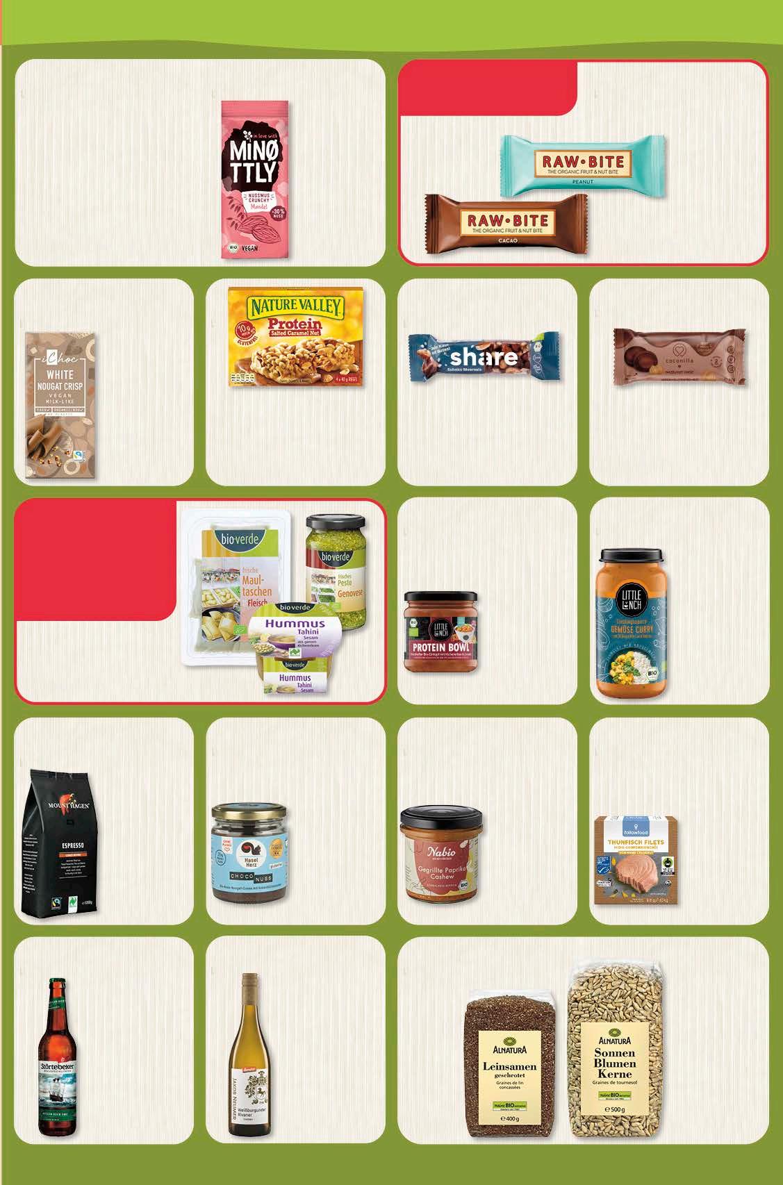 Raw Bite Riegel versch. Sorten vegan 50 g 1 kg = 31,80 1,59 -20% UVP 1,99 Jakob Neumer Wein versch. Sorten 750 ml 1 l = 7,32 5,49 -21% UVP 6,99 alles bio - nachhaltig