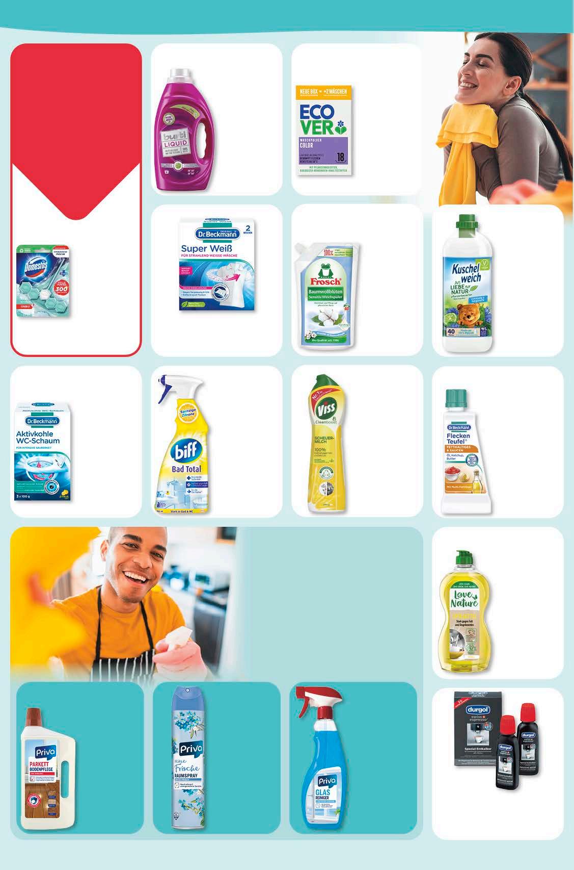 waschen & haushalt Abgabe in haushaltsüblichen Mengen. Viss Scheuermilch versch. Sorten 500 ml 1 l = 2,78 1, 39 -44% UVP 2,49 Frosch Weichspüler versch. Sorten 1 Liter 1,79 -22% UVP 2,29 Biff Badreiniger 750 ml 1 l = 3,05 2,29 -23% UVP 2,99 Burti Liquid Waschmittel versch. Sorten 26 WL 1 WL = 0,10 2,49 -29% UVP 3,49 Dr. Beckmann Fleckenteufel versch. Sorten 50 ml 1 l = 35,80 1,79 -22% UVP 2,29 Dr. Beckmann Super Weiß 80 g 1 kg = 22,38 1,79 -10% UVP 1,99 Ecover Waschmittel Pulver versch. Sorten 18 WL 1 WL = 0,28 4,99 -27% UVP 6,79 Kuschelweich Weichspüler Aus Liebe zur Natur versch. Sorten vegan 40 WL 1 WL = 0,04 1,59 -36% UVP 2,49 Durgol Spezial Entkalker 2x 125 ml 1 l = 19,96 4,99 -32% UVP 7,29 Priva Glasreiniger 1 Liter 1,59 budni marke Priva Raumspray versch. Sorten 300 ml 1 l = 3,97 1,19 Priva Bodenpflege versch. Sorten 1 Liter 1,69