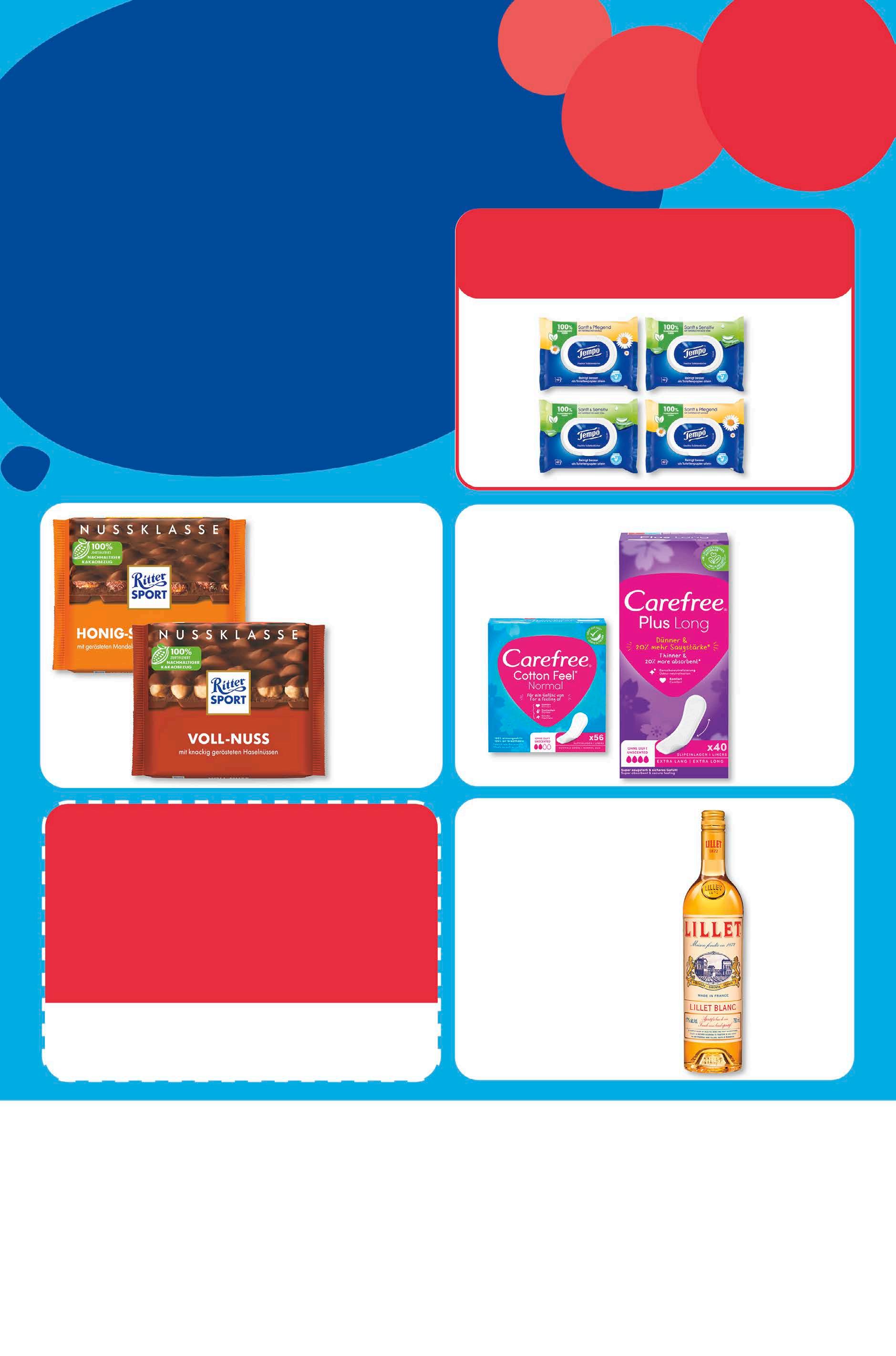 papier versch. Sorten 42 Stück UVP 1,79 Einzelpreis 1,19 -34% 4 für 3 entspr./stück 0,89 Carefree Slipeinlagen versch. Sorten Packung 2,22 -26% UVP 2,99 Ritter Sport Nuss Klasse versch. Sorten 100 g 1 kg = 9,90 0,99 -45% UVP 1,79 Lillet Weiß 17% 750 ml 1 l = 15,99 11,99 -25% UVP 15,99 Lillet Spritz 6 cl Lillet Weiß 3 cl Sodawasser 9 cl Alnatura Proscecco Orangenscheibe Eiswürfel