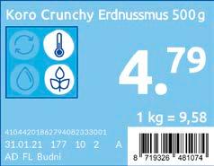 genuss Tartex Aufstrich versch. Sorten vegan 135 g 1 kg = 16,96 2,29 -18% UVP 2,79 Alnatura Mandelmus weiß vegan 250 g 1 kg = 23,96 5,99 -14% UVP 6,99 Koro Crunchy Erdnussmus 500 g 1 kg = 9,58 4,79 -13% UVP 5,50 Lavazza Crema e Gusto gemahlen 250 g 1 kg = 13,96 3,49 -22% UVP 4,49 Followfish Thunfisch versch. Sorten 185 g 1 kg = 13,46 2,49 -29% UVP 3,49 Followfish Pasta-Sauce versch. Sorten 200 g 1 kg = 14,95 2,99 -21% UVP 3,79 Dallmayr Capsa versch. Sorten 10 Kapseln/ 56 g 1 kg = 44,46 2,49 -24% UVP 3,29 After Eight 200 g 1 kg = 7,45 1,49 -39% UVP 2,45 Merci Grosse Vielfalt oder Black & White versch. Sorten 250/240 g 1 kg = 11,16/11,63 2,79 -18% UVP 3,39 Rotbäckchen Saft versch. Sorten 200 ml 1 l = 4,95 0,99 -17% UVP 1,19 Kluth Nuss-Mix versch. Sorten 275 g 1 kg = 14,51 3,99 -11% UVP 4,49 Toblerone versch. Sorten 100 g 1 kg = 12,90 aktion 1,29 ressourcenschutz süßwasserschutz artenvielfalt klimaschutz für mehr: Lemonaid oder Charitea versch. Sorten zzgl. 0,25 € Pfand Gesamtpr. 1,54 € 330 ml 1 l = 3,91 1,29 -24% UVP 1,69 Alnatura Dinkelflocken Feinblatt 500 g 1 kg = 2,98