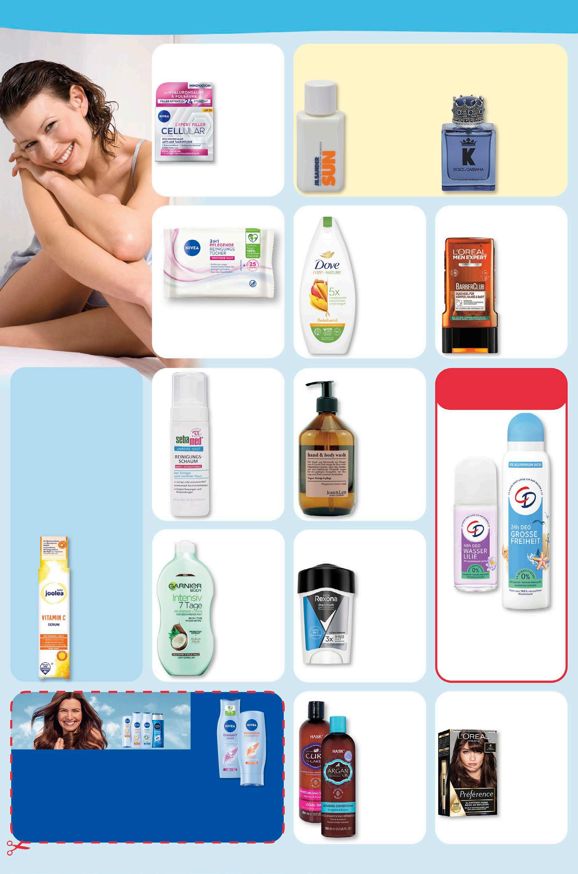 pflege & frische ressourcenschutz süßwasserschutz artenvielfalt klimaschutz für mehr: Jil Sander Sun Vaporisateur Eau de Toilette 75 ml 19,99 -33% UVP 29,99 düfte der woche Dolce & Gabbana K for Men Eau the Parfum versch. Sorten 50 ml 44,44 -49% UVP 87,00 Nivea Shampoo oder Spülung versch. Sorten 250/200 ml 1 l = 8,88/11,10 2,22 -20% UVP 2,79 Nivea Cellular Expert Filler Tagespflege versch. Sorten 50 ml 1 l = 259,80 12,99 -30% UVP 18,49 L’Oréal Men Expert Duschgel versch. Sorten 250 ml 1 l = 6,36 1,59 -18% UVP 1,95 Dove Care by Nature Duschgel versch. Sorten 225 ml 1 l = 8,84 1,99 -20% UVP 2,49 Nivea Reinigungstücher versch. Sorten 25 Stück 1,99 -20% UVP 2,49 Sebamed Reinigungsschaum 150 ml 1 l = 33,27 4,99 -23% UVP 6,49 Jean & Len Hand- & Bodyseife versch. Sorten 500 ml 1 l = 19,98 9,99 -17% UVP 11,99 Garnier Körpermilch versch. Sorten 400 ml 1 l = 7,48 2,99 -25% UVP 3,99 Rexona Maximum Protection Deo Creme versch. Sorten 45 ml 1 l = 88,67 3,99 -20% UVP 4,99 Hask Shampoo oder Spülung versch. Sorten 355 ml 1 l = 15,63 5,55 -20% UVP 6,95 deine pflege