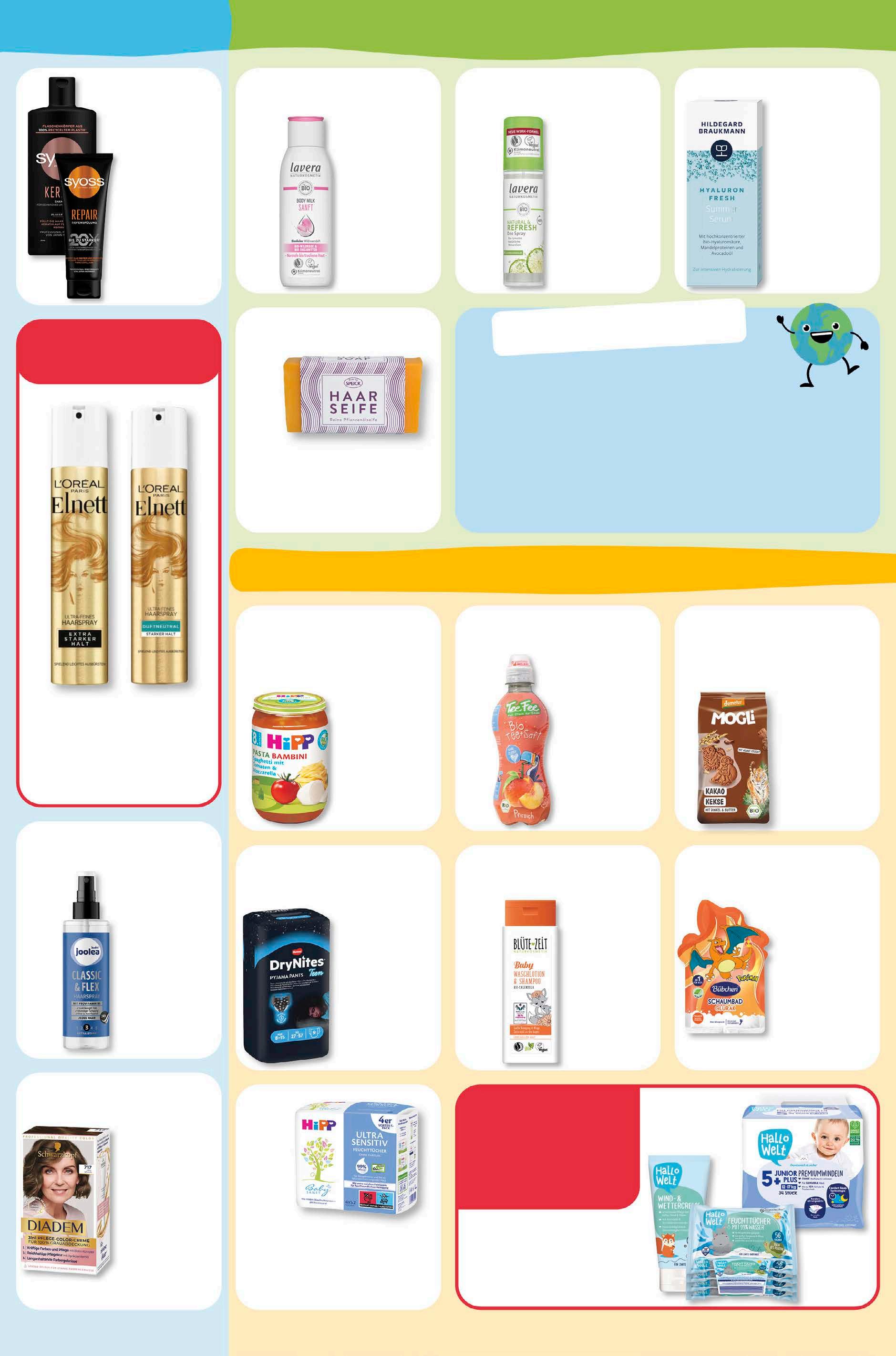 Elnett Haarspray versch. Sorten 250 ml 1 l = 11,16 2,79 -30% UVP 3,99 Hipp Gläschen ab 8. Monat versch. Sorten 220 g 1 kg = 6,32 1, 39 -22% UVP 1,79 Teefee Tee & Saft versch. Sorten vegan 300 ml 1 l = 2,97 0,89 -10% UVP 0,99 Blüte-Zeit Baby Waschlotion & Shampoo 250 ml 1 l = 11,96 2,99 budni marke Huggies DryNites Pants versch. Sorten & Größen 9/10 Stück 5,99 -28% UVP 8,29 Bübchen Schaumbad versch. Sorten vegan 40 ml 1 l = 17,25 0,69 -27% UVP 0,95 Joolea Pumphaarspray vegan 150 ml 1 l = 9,93 1,49 budni marke Babysanft Feuchttücher versch. Sorten 3/4x 48/52/56 Stück 3,29 -34% UVP 4,99 Diadem Pflege-ColorCreme versch. Farben Packung 3,99 -20% UVP 4,99 budni marke zum