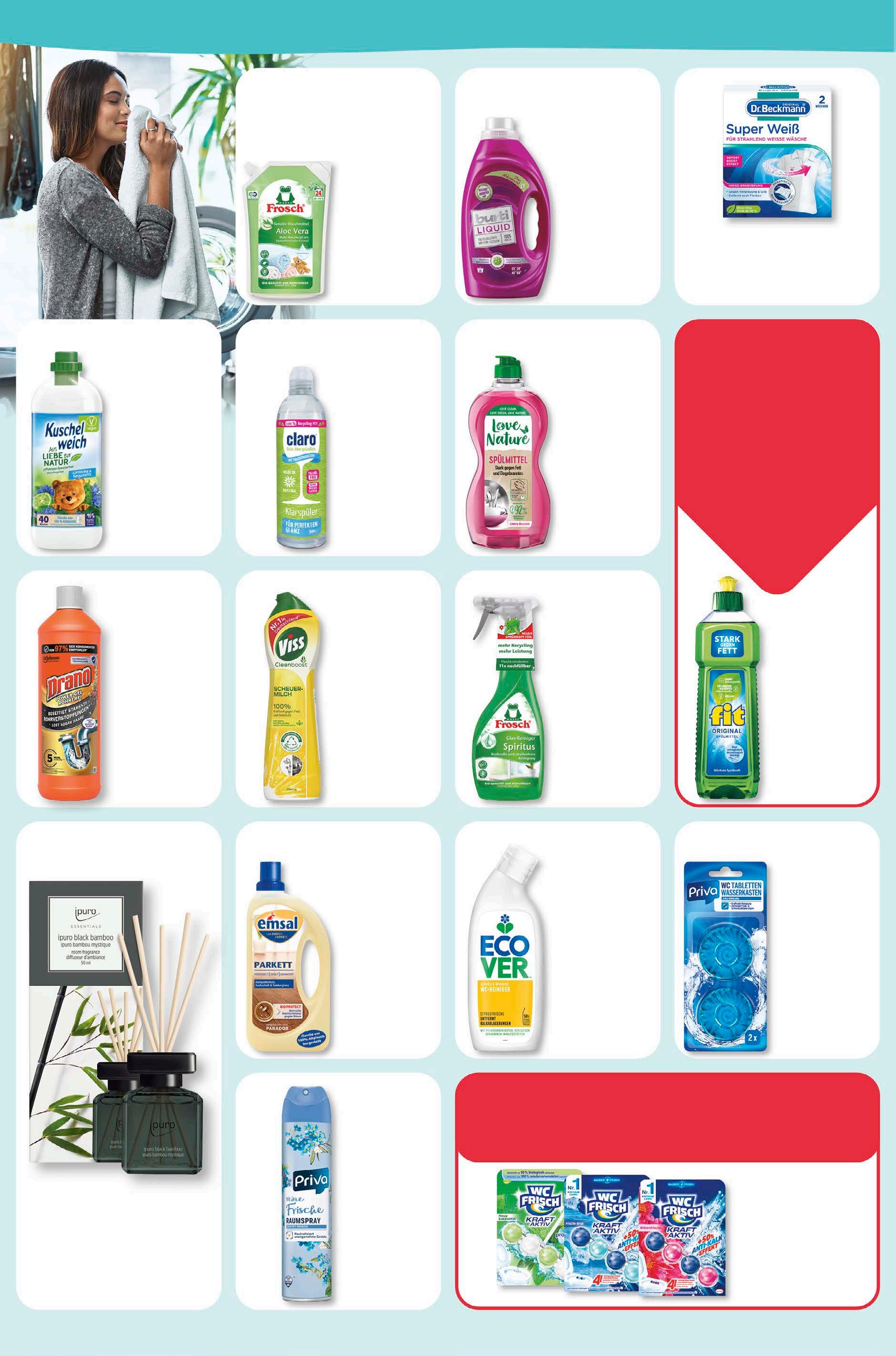 waschen & haushalt Abgabe in haushaltsüblichen Mengen. Frosch Waschmittel versch. Sorten 24 WL 1 WL = 0,18 4,29 -14% UVP 4,99 Burti Feinwaschmittel versch. Sorten 26 WL 1 WL = 0,10 2,49 -29% UVP 3,49 Dr. Beckmann Super Weiß 80 g 1 kg = 18,63 1,49 aktion Love Nature Spülmittel versch. Sorten 450 ml 1 l = 3,31 1,49 -25% UVP 1,99 Frosch Glas- oder Bad-Reiniger 500 ml 1 l = 3,38 1,69 -26% UVP 2,29 Claro Klarspüler 500 ml 1 l = 3,78 1,89 -24% UVP 2,49 Drano Power-Gel Rohrfrei 1 Liter 2,79 -26% UVP 3,79 Kuschelweich Aus Liebe zur Natur Weichspüler versch. Sorten vegan 40 WL 1 WL = 0,04 1,79 -28% UVP 2,49 Viss Scheuermilch versch. Sorten 500 ml 1 l = 3,78 1,89 -24% UVP 2,49 dienstag happy deal am 1,00 UVP 1,49 1 l = 2,00 Fit Spülmittel Original vegan 500 ml 1 l = 2,38 1,19 -20% UVP 1,49 Essentials by Ipuro Raumduft versch. Sorten 50 ml 1 l = 89,80 4,49 -25% UVP 5,99 Priva Raumspray versch. Sorten 300 ml 1 l = 3,97 1,19 budni marke Emsal Bodenpflege versch. Sorten 1 Liter 3,99 -27% UVP 5,49 Ecover WC-Reiniger 750 ml 1 l = 2,25 1,69 -32% UVP 2,49 Priva Wasserkasten WC Tabletten 2x 50 g 1 kg = 9,90 0,99 budni marke WC Frisch Kraft-Aktiv Duftspüler versch. Sorten 50 g UVP 2,09 Einzelpreis 1,29 -38% 1 kg = 25,80 3 für 2 entspr./stück 0,86 1 kg = 17,20 -33%