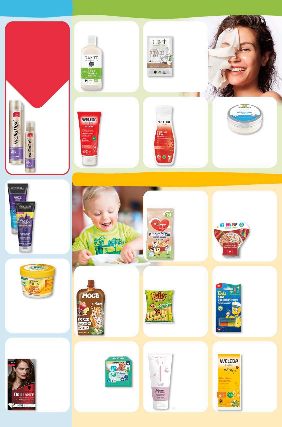 Abgabe in haushaltsüblichen Mengen. baby & kind naturkosmetik 1 Mogli Quetschi versch. Sorten vegan 120 g 1 kg = 7,42 0,89 -25% UVP 1,19 Blüte-Zeit Tuchmaske versch. Sorten Stück 1,99 budni marke Sante Shampoo versch. Sorten 250 ml 1 l = 13,96 3,49 -19% UVP 4,29 Greendoor Deo Creme versch. Sorten vegan 50 ml 1 l = 119,80 5,99 -25% UVP 7,95 Weleda Körperlotion versch. Sorten 200 ml 1 l = 64,95 12,99 -23% UVP 16,95 Weleda Duschgel versch. Sorten 200 ml 1 l = 26,45 5,29 -24% UVP 6,95 Garnier Fructis Hairfood Maske versch. Sorten 400 ml 1 l = 12,48 4,99 -17% UVP 5,99 John Frieda Shampoo oder Spülung versch. Sorten 250 ml 1 l = 27,96 6,99 -13% UVP 7,99 Naif Babybody Lotion 200 ml 1 l = 54,75 10,95 -27% UVP 14,95 Wellaflex Haarspray oder Schaumfestiger versch. Sorten 200/250 ml 1 l = 11,45/9,16 2,29 -18% UVP 2,79 dienstag happy deal am 1,99 UVP 2,79 -29% 1 l = 9,95/ 7,96 Hipp KinderTeller versch. Sorten 250 g 1 kg = 6,76 1,69 -32% UVP 2,49 Milupa Kinder Müsli versch. Sorten 400 g 1 kg = 10,73 4,29 -26% UVP 5,79 Weleda Baby Bäuchlein Öl 50 ml 1 l = 159,80 7,99 -27% UVP 10,99 www.blauer-engel.de /uz208 1 Brillance IntensivColor-Creme versch. Farben Packung 5,99 -14% UVP 6,99 Hallo Welt Premium Windeln versch. Größen vegan 60 Stück 10,59 budni marke Tinti Badeüberraschung 2 Stück 1,99 -20% UVP 2,49 Billy Tiger Maisstangen 60 g 1 kg = 11,50 0,69 aktion