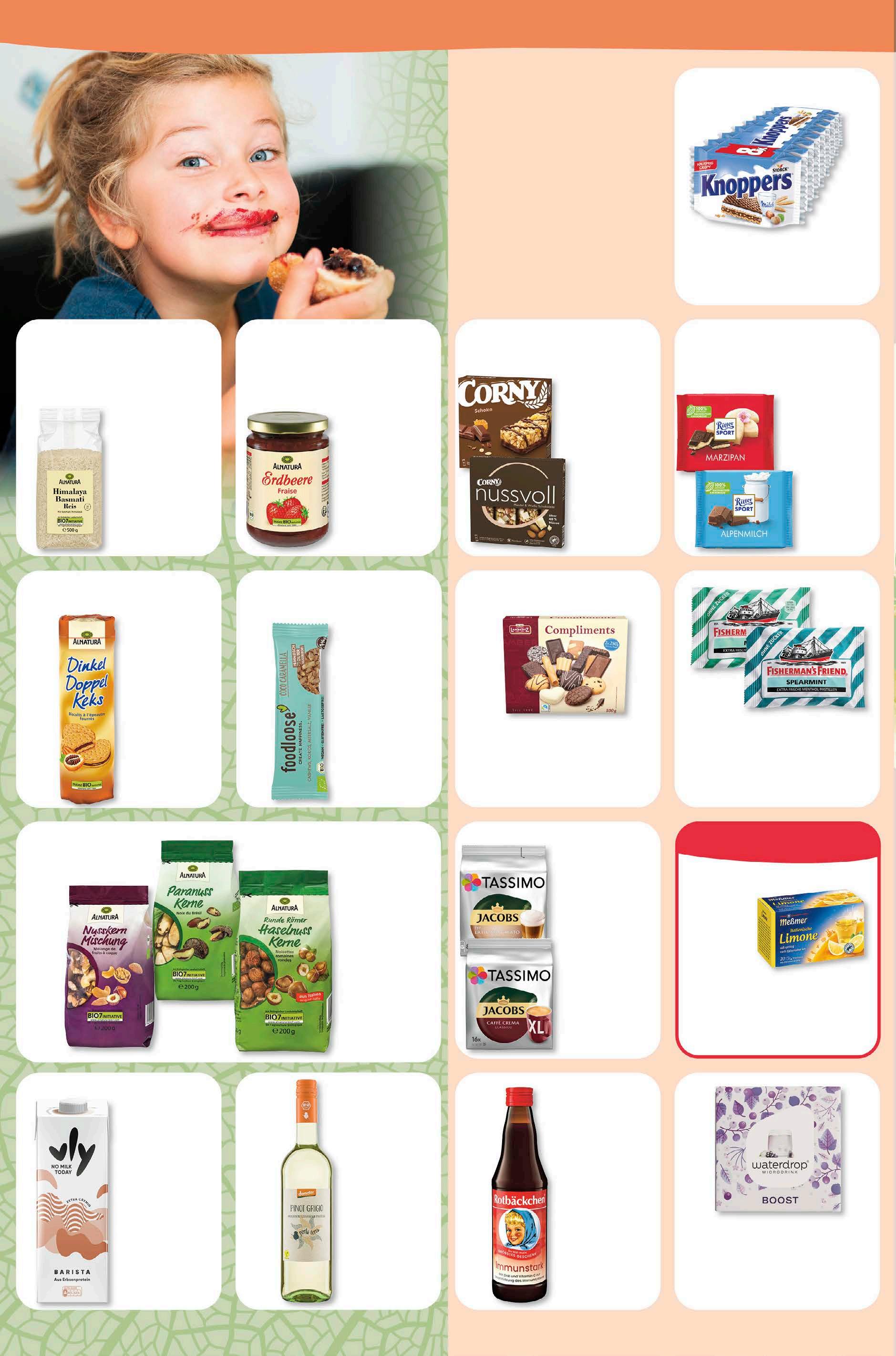 Knoppers 200 g 1 kg = 6,75 1, 35 -29% UVP# 1,89 Lambertz Gebäckmischung Compliments 500 g 1 kg = 3,98 Rotbäckchen Saft versch. Sorten vegan 330 ml 1 l = 4,52 1,49 -25% UVP# 1,99 Waterdrop Microdrink Tabs versch. Sorten 24 g 1 kg = 228,75 5,49 -21% UVP# 6,99 Jacobs Kaffeepads versch. Sorten 132,8/264 g 1kg = 28,54/14,36 3,79 -35% UVP# 5,79 # Unverbindliche Preisempfehlung des Herstellers. Corny Riegel versch. Sorten 150 g 1 kg = 6,60 0,99 -45% UVP# 1,79 Fisherman‘s Friend Pastillen versch. Sorten 25 g 1 kg = 23,60 0,59 -40% UVP# 0,99 Alnatura Dinkel Doppelkeks versch. Sorten vegan 330 g 1 kg = 5,91 1,95 -11% UVP# 2,19 Alnatura Himalaya Basmati Reis 500 g 1 kg = 4,58 2,29 -15% UVP# 2,69 Ritter Sport Bunte Vielfalt versch. Sorten 100 g 1 kg = 7,90 0,79 -39% UVP# 1,29 genuss 1,99 -33% UVP# 2,99 Alnatura Hasel-, Paranusskerne oder Nusskernmischung 200 g 1 kg = 17,45 aktion 3,49 knaller-preis Meßmer Tee versch. Sorten vegan 20x 2 g 1 kg = 32,25 1,29 -41% UVP# 2,19 über 1.100 produkte zu discountpreisen! Alnatura Fruchtaufstrich versch. Sorten 420 g 1 kg = 4,74 1,99 -20% UVP# 2,49 Foodloose Riegel versch. Sorten 35 g 1 kg = 36,86 1,29 -13% UVP# 1,49 Vly Barista Milch alternative versch. Sorten vegan 1 Liter 1,99 -20% UVP# 2,49 Perla Terra Wein versch. Sorten 750 ml 1 l = 5,32 3,99 -27% UVP# 5,49