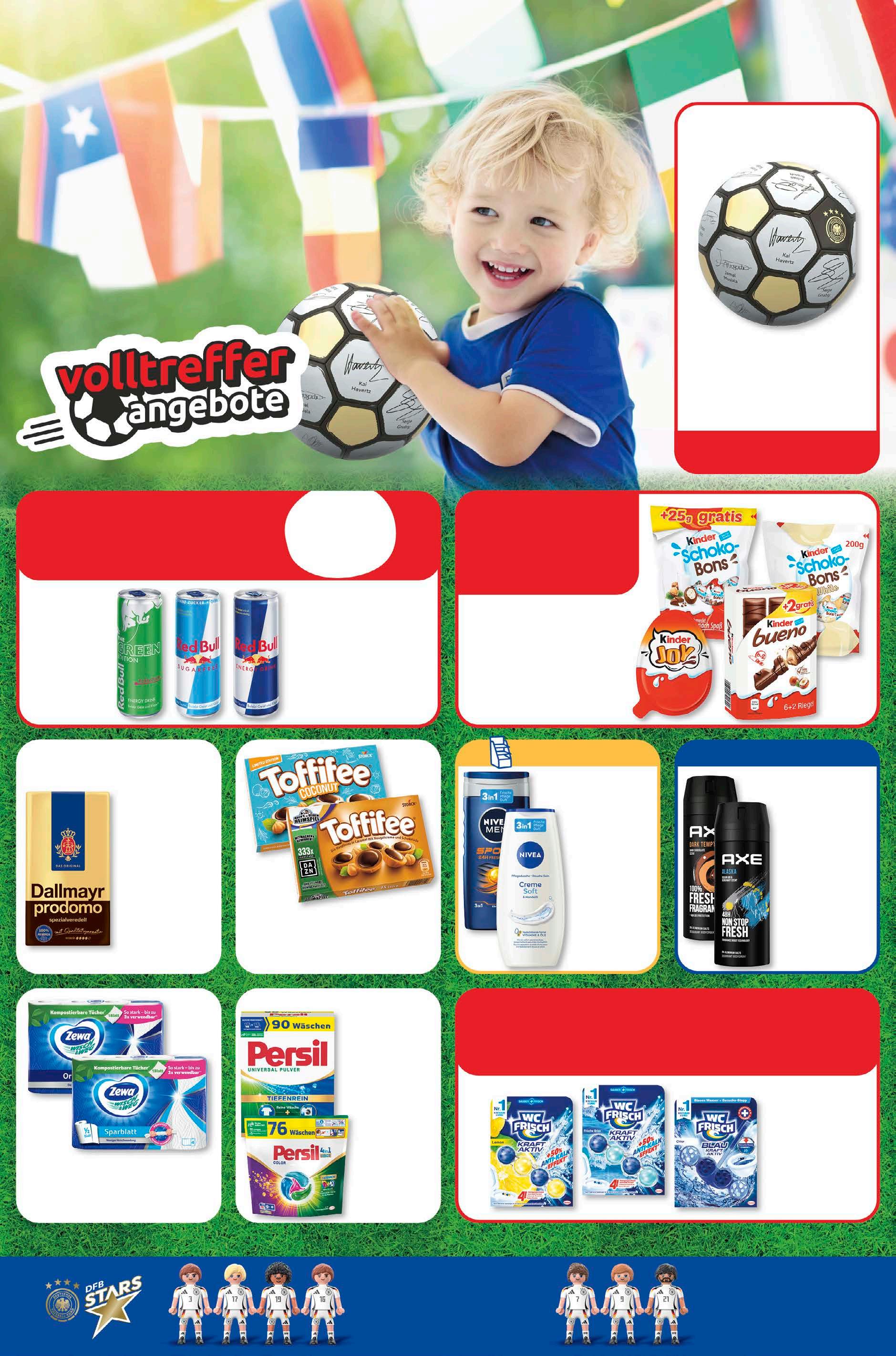 entspr./stück 1,33 1 kg = 26,60 Mehr EM-Angebote auf Seite 7. -33% WC Frisch Kraft-Aktiv Duftspüler versch. Sorten 50 g Einzelpreis 1,99 1 kg = 39,80 mit Unterschriften der DFB-Stars DFB Miniball Größe 1 Ø ca. 14-14,5 cm Stück 8,99 -55% UVP 19,95 Toffifee versch. Sorten 125 g 1 kg = 10,32 1,29 -24% UVP 1,69 entspr./stück 0,99 UVP 1,49 1 l = 3,96 -34% Zewa Wisch & Weg versch. Sorten 4x 45/74 Blatt 2,29 -30% UVP 3,29 Dallmayr Prodomo 500 g 1 kg = 8,58 4,29 -43% UVP 7,49 -15% auf alle artikel von app/kundenkarte KW 22 DFB-STARS! SAMMLE ALLE © 2024 by geobra ® PLAYMOBIL pronounced: play-mo-beel , www.playmobil.com Lizenziert durch BAVARIA MEDIA LICENSING. © 2024, DFB | www.dfb.de 3 für 2,99€ im aufsteller