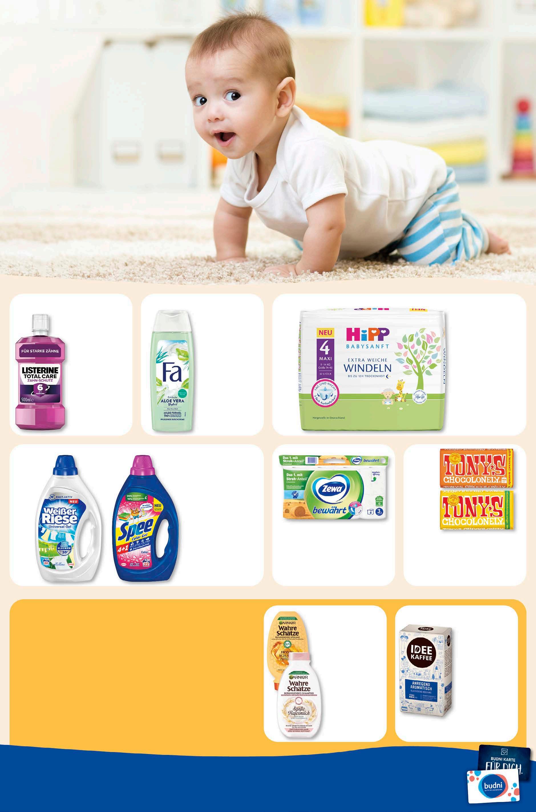 preisschild in deiner budni-filiale. nachhaltiger einkaufen. für mehr ressourcenschutz für mehr süßwasserschutz für mehr artenvielfalt für mehr klimaschutz Mehr Infos findest Du unter: budni.de/wegweiser Blüte-Zeit Duschgel versch. Sorten vegan 250 ml 1 l = 5,56 1, 39 -22% 1,79 budni marke Blüte-Zeit Flüssigseife versch. Sorten vegan 500 ml 1 l = 3,38 1,69 -15% 1,99 budni marke 20% rabatt auf alle artikel von sante. Garnier Wahre Schätze Haarkur versch. Sorten 340 ml 1 l = 13,21 4,49 -10% UVP 4,99 budni marke Garnier Olia Coloration versch. Farben vegan Packung 5,99 -14% UVP 6,99 Tinti Badeüberraschung 2er Pack 1,99 -20% UVP 2,49 Löwenzahn Organics Baby Porridge versch. Sorten ab dem 5. Monat 150 g 1 kg = 23,00 3,45 -13% UVP 3,95 Naif Feuchttücher plastikfrei 54 Stück 2,49 -29% UVP 3,49 2,69 aktion Sagrotan No Touch Kids Nachfüller versch. Sorten 250 ml 1 l = 10,76 Hipp Hippis versch. Sorten vegan 100 g 1 kg = 9,90 0,99 -23% UVP 1,29 knaller-preis