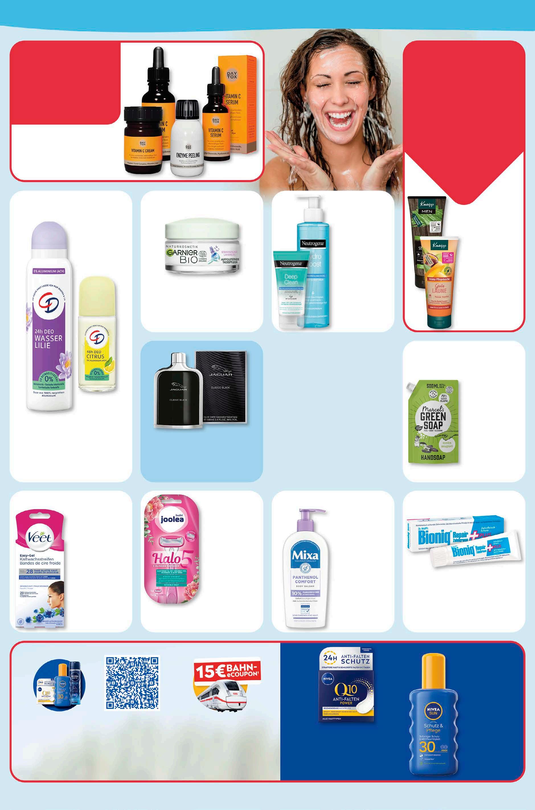 Abgabe in haushaltsüblichen Mengen. Günstigster Preis der letzten 30 Tage: Blüte-Zeit Duschgel 1,34, Blüte-Zeit Flüssigseife 1,59, Hallo Welt Dusche & Shampoo 1,27. ‡ Gleichzeitig günstigster Gesamtpreis der letzten 30 Tage. pflege & frische Bioniq Repair-Zahncreme Plus 75 ml 1 l = 70,53 5,29 -12% UVP 5,99 Kneipp Duschgel versch. Sorten 200 ml 1 l = 12,95 2,59 -35% UVP 3,99 20% rabatt auf alle artikel von daytox. dienstag happy deal am 2,22 UVP 3,99 -44% Jaguar Classic Black Eau de Toilette versch. Sorten 100 ml 14,99 -46% UVP 27,80 1 l = 11,10 Neutrogena Peeling oder Aqua Reinigungsgel 150/200 ml 1 l = 26,60/19,95 3,99 -20% UVP 4,99 Garnier Bio Skin Active Tagespflege vegan 50 ml 1 l = 159,00 7,95 -12% UVP 8,99 CD Deo Spray oder Roll-On versch. Sorten 150/50 ml 1 l = 11,93/35,80 1,79 -10% UVP 1,99 über 1.100 produkte zu discountpreisen! Green Soap Flüssigseife vegan 500 ml 1 l = 4,98 2,49 -17% UVP 2,99 Veet Kaltwachsstreifen Gesicht oder Bikini & Achseln 20/16 Stück 4,99 -17% UVP 5,99 Joolea Woman Halo 5 Rasierer inkl. 1 Klinge