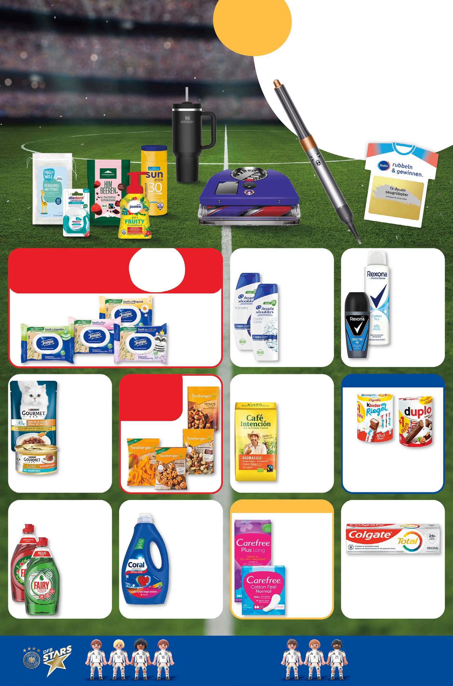 Gültig vom 17.06. bis 22.06.2024 Head& Shoulders Shampoo versch. Sorten 300 ml 1 l = 12,63 3,79 -26% UVP 5,19 Rexona Deo Spray oder Roll-On versch. Sorten 50/150 ml 1 l = 35,80/11,93 1,79 -28% UVP 2,49 Colgate Total Zahncreme versch. Sorten 75 ml 1 l = 26,53 1,99 -33% UVP 2,99 Gourmet Gold Katzennahrung versch. Sorten 85 g 1 kg = 5,76 aktion 0,49 Café Intención gemahlen versch. Sorten 500 g 1 kg = 13,98 6,99 -22% UVP 8,99 Fairy Spülmittel versch. Sorten 450 ml 1 l = 2,64 1,19 -48% UVP 2,29 Carefree Slipeinlagen versch. Sorten Packung 1,99 -33% UVP 2,99 Coral Waschmittel versch. Sorten 23 WL 1 WL = 0,13 2,89 -45% UVP 5,29 DFB-STARS! SAMMLE ALLE © 2024 by geobra ® PLAYMOBIL pronounced: play-mo-beel , www.playmobil.com Lizenziert durch BAVARIA MEDIA LICENSING. © 2024, DFB | www.dfb.de KW 25 Solange der Vorrat reicht. Irrtümer vorbehalten. Abgabe in haushaltsüblichen Mengen. Angebote gelten nicht bei Handelspartnern mit ausgewiesener budni-beautybox-Fläche. im aufsteller Duplo oder Kinder Riegel versch. Sorten 200/231 g 1 kg = 8,45/7,32 1,69 -39% UVP 2,79 app/kundenkarte Tempo Feuchtes Toilettenpapier versch. Sorten 42 Blatt UVP 1,79 Einzelpreis 1,29 -27%