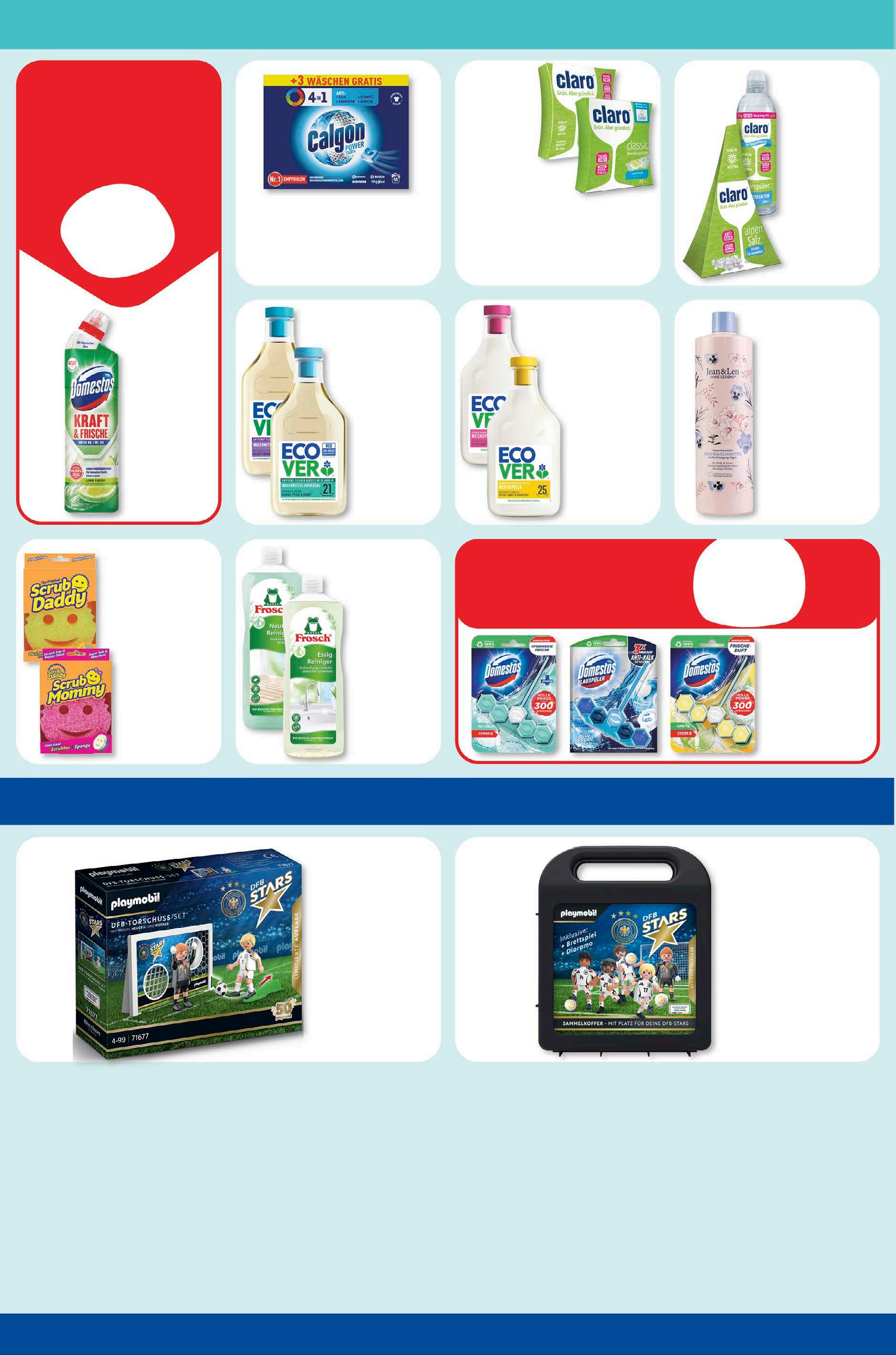 Calgon 4in1 Wasserenthärter versch. Sorten 50 WL 1 WL = 0,17 8,49 -15% UVP 9,99 Frosch Essig- oder Neutralreiniger versch. Sorten vegan 1 Liter 1,69 -32% UVP 2,49 Scrub Daddy oder Mommy Schwamm Stück 2,99 -25% UVP 3,99 Jean & Len Feinwaschmittel Wolle & Feines 1 Liter 20 WL 1 WL = 0,24 4,79 -20% UVP 5,99 Ecover Waschmittel versch. Sorten 21 WL 1 WL = 0,21 4,49 -35% UVP 6,99 Domestos WC Gel Kraft& Frische versch. Sorten 750 ml 1 l = 2,12 1,59 -36% UVP 2,49 1 Biozidprodukte vorsichtig verwenden. Vor Gebrauch stets Etikett und Produktinformation lesen. Claro Klarspüler oder Alpensalz versch. Sorten 500 ml/1 kg 1 l = 3,78 Claro Öko Classic Spülmaschinen-Tabs versch. Sorten 50/75 WL 1 WL = 0,14/0,09 6,99 -33% UVP 10,49 Ecover Weichspüler versch. Sorten vegan 25 WL 1 WL = 0,08 1,99 -26% UVP 2,69 ab 1,49 aktion *Nur solange der Unverbindliche Preisempfehlung. 12,99 aktion PLAYMOBIL DFB Torschussset 4,99 aktion PLAYMOBIL DFB Sammelkoffer Stück DFB-STARS! SAMMLE ALLE Die große DFB-Sammelaktion von budni und PLAYMOBIL. 2,99 EURO!* JETZT NUR JE MIT 5 TREUEPUNKTEN TREUEPUNKTEHIEREINKLEBEN! 4 1 TREUEPUNKTE HIER EINKLEBEN! 4 5 1 2 3 © 2024 by geobra ® PLAYMOBIL pronounced: play-mo-beel , www.playmobil.com Lizenziert durch BAVARIA MEDIA LICENSING. © 2024, DFB | www.dfb.de exklusiv und nur für kurze zeit dienstag happydeal am 1,29 UVP 2,49 -48% 1 l = 1,72 -50% Domestos WC Stein versch. Sorten 53/55 g UVP 1,99 Einzelpreis 1,49 25% 1 kg = 28,11/27,09 3 für 2 entspr./stück 0,99 UVP 1,99 1 kg = 18,00/18,68 5,99 EURO!* REGULÄR JE