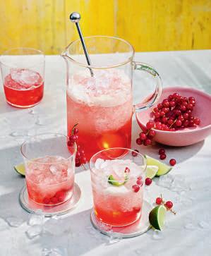 2 Den Gin mit Campari, Wermut, 60 ml Limettensaft und Crushed Ice in einen Standmixer geben und auf höchster Stufe fein pürieren. Die Mischung in die Gläser füllen. Limettenstreifen leicht zusammendrücken und mit den Johannisbeeren auf die Gläser verteilen. Die Drinks mit Secco Frizzante au üllen und servieren.