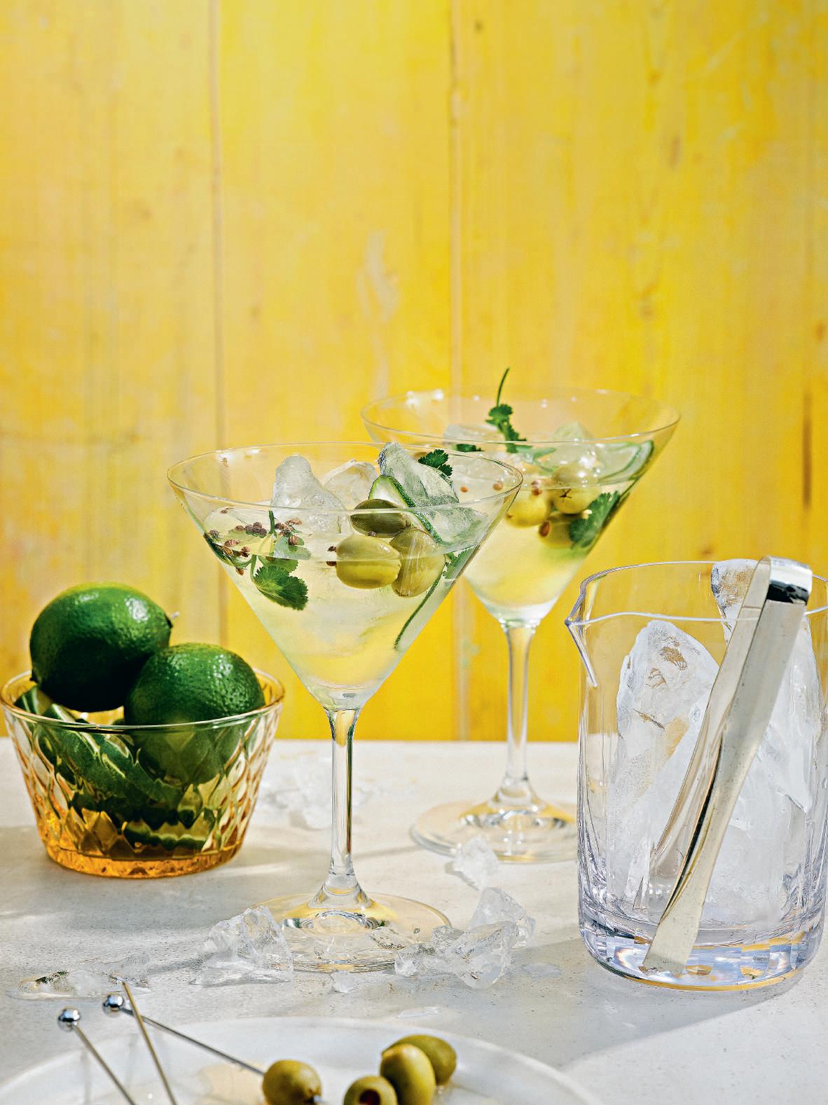 • 4–6 Eiswürfel • 6–8 kleine grüne Oliven