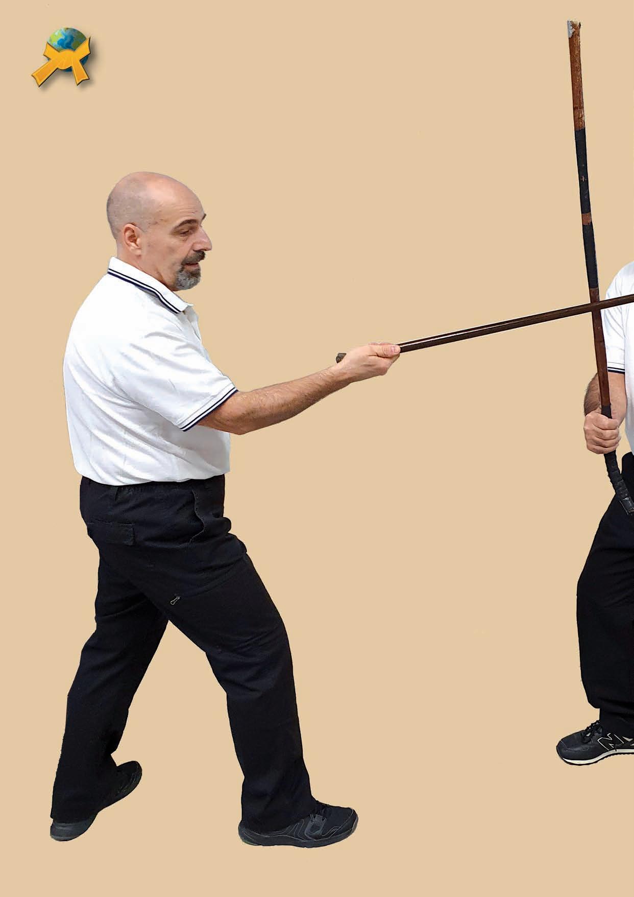 Le Maître nous rappelle l'importance pratique de l'escrime au bâton et de la boxe comme moyens d'autodéfense. Parce que l'escrime au bâton, qui est un moyen de confrontation récréative avec d'autres escrimeurs « armés »sur un pied d'égalité, peut devenir par nécessité une escrime conservatrice contre l'inconnu.