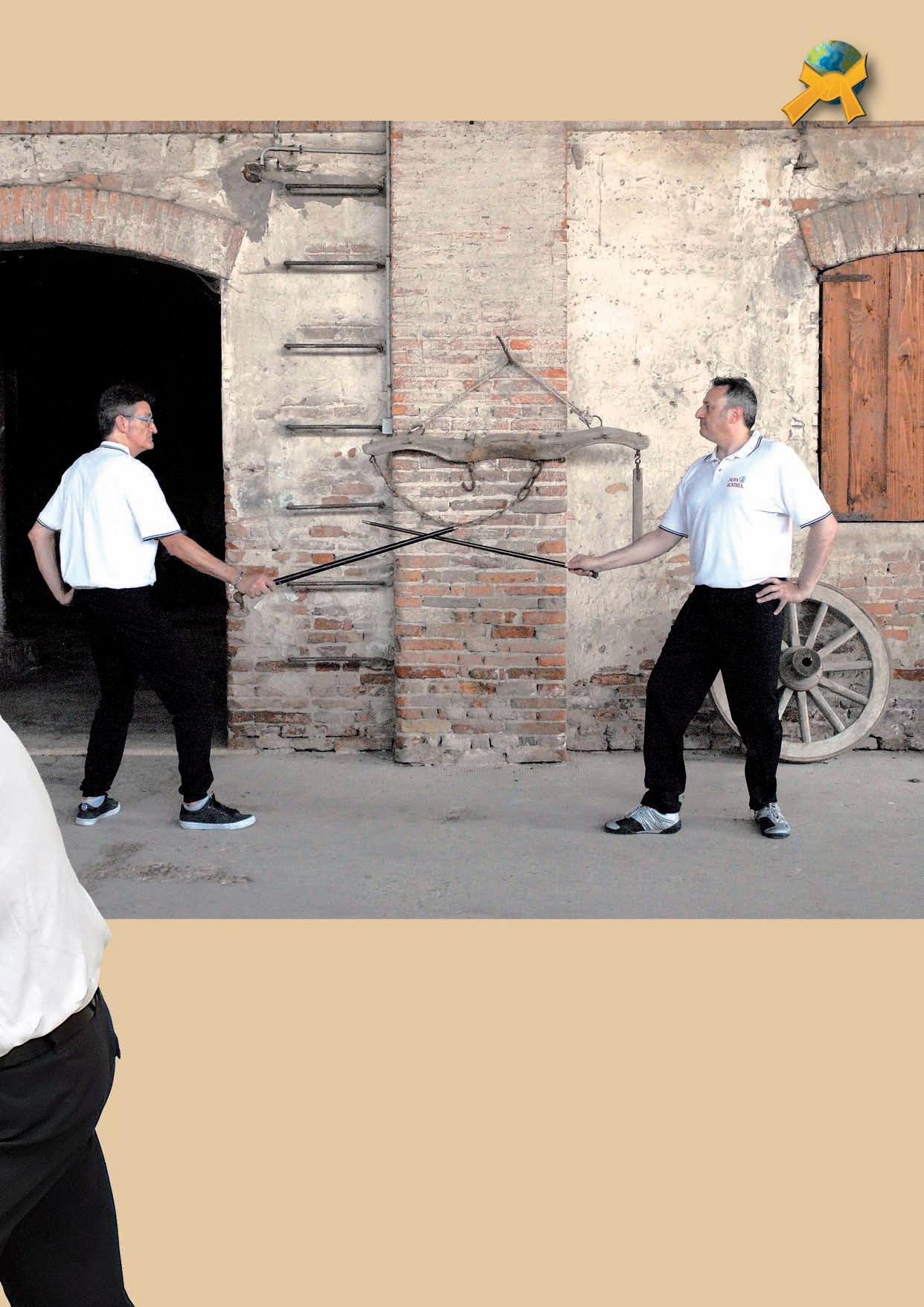 Il y a plus d'un siècle, dans nos villes, les hommes de différentes classes sociales recouraient encore aux duels à l'épée et au sabre pour régler leurs différends et, dans les rues, on pouvait rencontrer des voyous et des agresseurs prêts à utiliser un couteau. Époque où il était courant pour un gentleman de sortir de chez lui avec sa canne, souvent animée, c'est-àdire équipée d'une lame dissimulée. En partant du traité de Maître G. Martinelli (1908) "Trattato di scherma con bastone da passeggio" interprété et intégré selon la méthodologie de la Nova Scrimia, les maîtres Chiaramonte, Galvani, Girlanda et Proietti présentent un travail complet sur l'utilisation de la canne, qui aujourd'hui encore peut être extrêmement valable et efficace. Pour l'escrime à la canne, Martinelli s'inspire de l'école italienne de sabre, avec une approche classique, ainsi que de la boxe comme moyen d'autodéfense : la garde, les frappes, les parades, les feintes, les pas tournants et circulaires, les sauts, les coups forts à la main, au bras, à l'aine et les terrifiants Jabs au visage. Le bâton dans les bonnes mains est aussi bon qu'un sabre. Bien sûr, il ne coupe pas, ne perce pas, ne tue pas, mais il met à genoux, si nécessaire, même le plus féroce des délinquants.