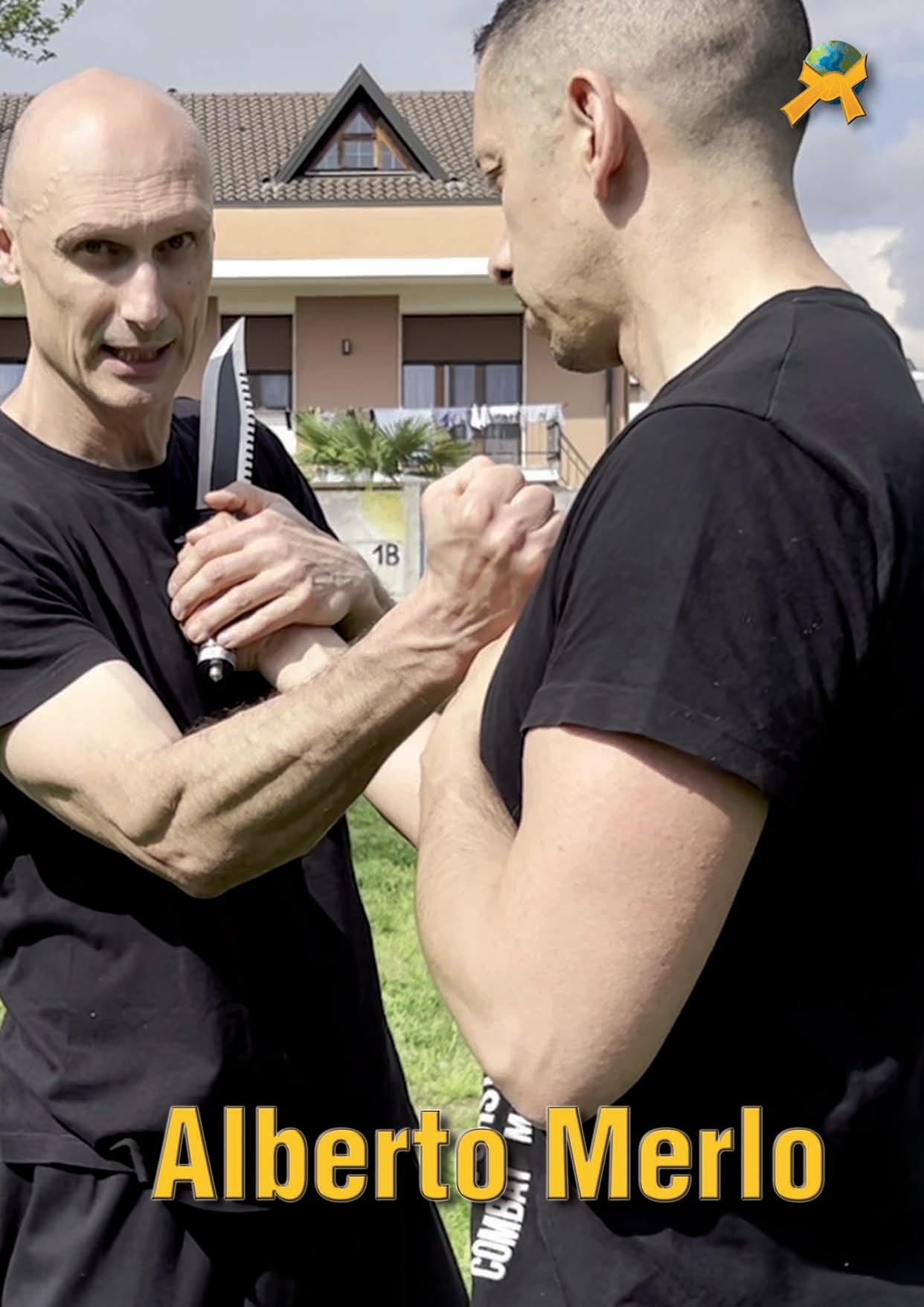 Si l'agresseur a un couteau dans les mains, une autre modification est nécessaire. Par exemple, sécurisez l'arme à l'aide de la main et de l'épaule en créant un désalignement entre l'épaule droite et l'épaule gauche. Un autre point clé est de rediriger le couteau vers l'agresseur, ce qui ne signifie pas que vous voulez le couper, mais seulement créer un blocage temporaire d'une seconde dans sa contre-réaction, afin d'avoir la possibilité de