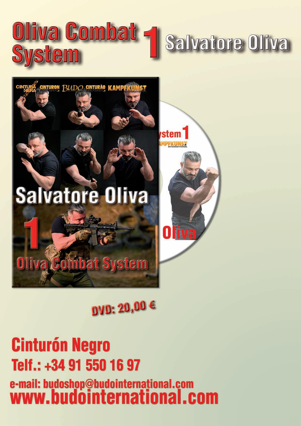 Salvatore OLIVA es una autoridad reconocida en todo el mundo, así como un reputado experto en diversas áreas de las artes marciales. Su extrema pasión por las artes marciales y los deportes de combate, específicamente en el área de la autodefensa para los agentes de la ley, le inspiró a desarrollar el Oliva Combat System. Un sistema de combate último y efectivo, basado en 3 fundamentos: simplicidad, efectividad, funcionalidad, que consta de 3 sistemas operativos diferentes: P.D.S. (Sistema de Defensa Progresiva), P.L.E.T. (Tácticas Profesionales para el Cumplimiento de la Ley) y C.A.T. (Sistema de Asalto Cobra), desarrollados como parte de un programa específico para la policía, funcionarios judiciales, organismos gubernamentales, militares y seguridad personal. A través de sus métodos de entrenamiento y técnicas de defensa realistas, así como los módulos de autodefensa y entrenamiento eficaces, el sistema de Salvatore OLIVA ha causado una gran sensación a nivel internacional. En este primer volumen veremos el desarme de pistola, ráfaga de puños explosivos (Explosive Straight Blast), herramientas rápidas de seguridad - Rapid Safe Tools (finger Jab, Slapping Hand, rodillas, patadas, Hammer Strike, ...), los ataques múltiples, Trapping funcional, las herramientas letales - Lethal Tools (cabeza, rodillas, codos), defensa con linterna de bolsillo, supervivencia en el suelo - Ground & Pound, y el combate en suelo avanzado. Herramientas simples, desarrollo de atributos y sus formas de entrenamiento para llevar nuestras competencias en materia de defensa personal a un nivel superior.