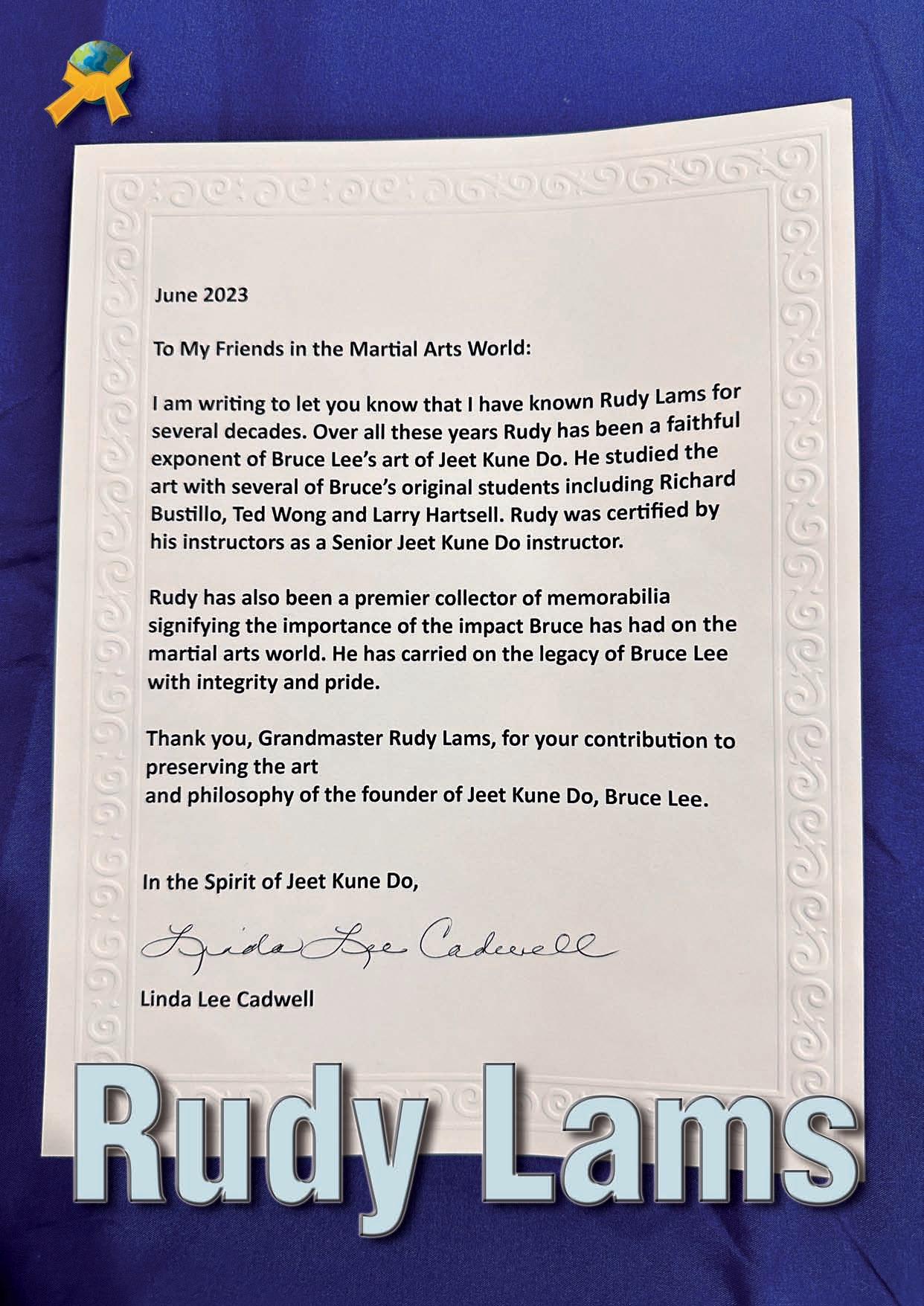 Grand Master Rudy Lams lleva más de 52 años entrenando Artes Marciales, Judo, Mantis Religiosa del Norte, Sil Lum Pai y es Sifu en Hung Gar Kung Fu, Cinturón Negro 1er grado en USA Goju Karate, Cinturón Negro en BJJ y Shootwrestling. Es asimismo Instructor de Jeet Kune Do de 2ª Generación entrenando con los mejores alumnos de Bruce Lee, Richard Bustillo, Dan Inosanto, Ted Wong y Larry Hartsell. También es Cinturón Negro