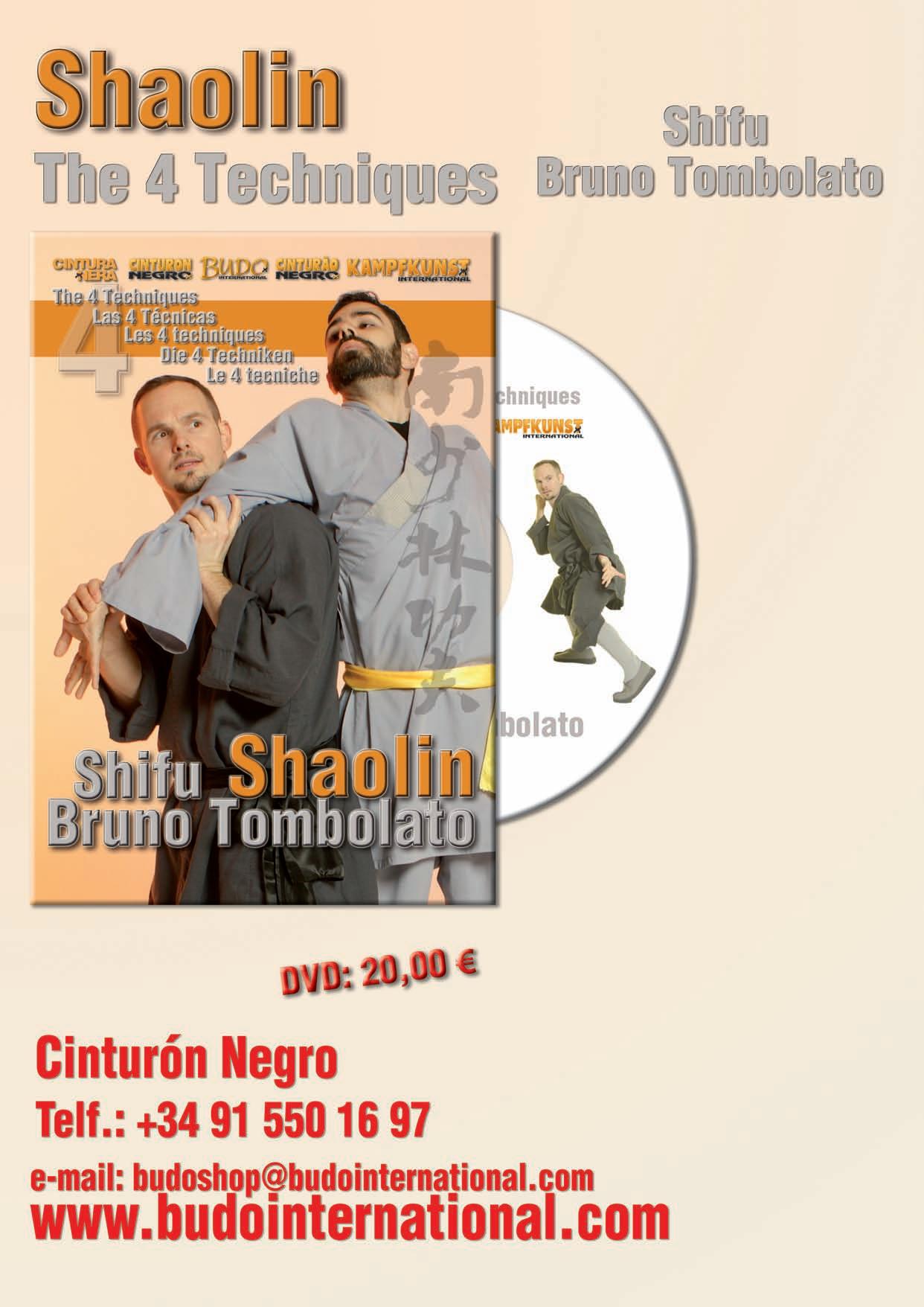 El Maestro Bruno Tombolato, discípulo de la 32 generación del Templo Shaolin de Songshan, presenta una recopilación de 18 técnicas de lucha del ShaolinQuan tradicional, ordenadas según las cuatro técnicas de defensa y ataque que componen el estilo: patear (tī), golpear (dǎ), lanzar o proyectar (shuāi) y atrapar (ná). Las artes marciales chinas han perdurado a lo largo de la historia como un tesoro de estilos de lucha, cada uno con su propia riqueza y profundidad. Estas cuatro habilidades, fundamentales en los sistemas de Gong Fu, otorgan una esencia completa y equilibrada a la práctica de las artes marciales chinas. La práctica del Gong Fu chino impone reglas estrictas en los movimientos de ataque y defensa. La maestría de Las Cuatro Técnicas no sólo reside en la perfección individual de cada habilidad, sino también en la integración fluida de todas ellas. Un artista marcial completo comprende que éstas no son entidades separadas, sino componentes interconectados de un sistema holístico. En las artes marciales chinas, las Cuatro Técnicas representan la esencia misma del Gong Fu tradicional.