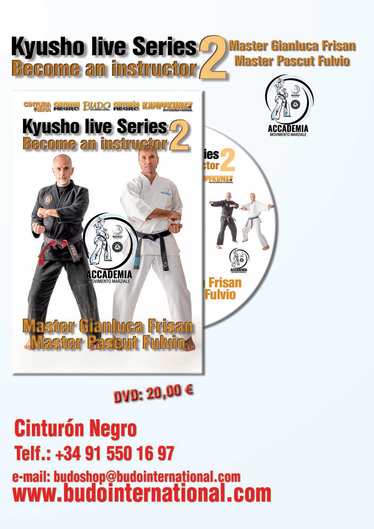 Bienvenido a la segunda entrega de la serie 'KYUSHO LIVE', con la que podrás avanzar en nuestra formación de Instructor reservada para cinturones negros de cualquier arte, estilo o método. El 2º DVD te proporcionará toda la información del primer nivel de aprendizaje. Los estudiantes de este nivel se centrarán en estos 3 principios rectores del método PinPoint™: movimiento corporal, control del centro, Kyusho: puntos de brazo, cabeza y pierna. Estos elementos sin embargo, crean sólo la "caja básica" capaz de contener los principios de conexión más avanzados, que representan la verdadera eficacia de las artes marciales: raíz, centro, onda, espiral, que junto con el estudio de los ejes, conducen a un nivel de eficacia en el que el dicho "máximo efecto con el mínimo esfuerzo" puede por fin encontrar su expresión concreta. El conocimiento de las partes débiles del cuerpo del oponente combinado con la conciencia de la correcta alineación y estructura de nuestro cuerpo se funden en uno. Kyusho se convierte en algo real, deja de ser místico. ¡No hay secretos en Kyusho! El Maestro Gianluca Frisan y el Maestro Pascut Fulvio pondrán a disposición de todos la información aprendida en más de 30 años de experiencia... información a menudo mantenida en secreto, principios quizás mostrados pero no explicados, ¡ahora son explicados en detalle para que tú también puedas aprenderlos y hacerlos tuyos!
