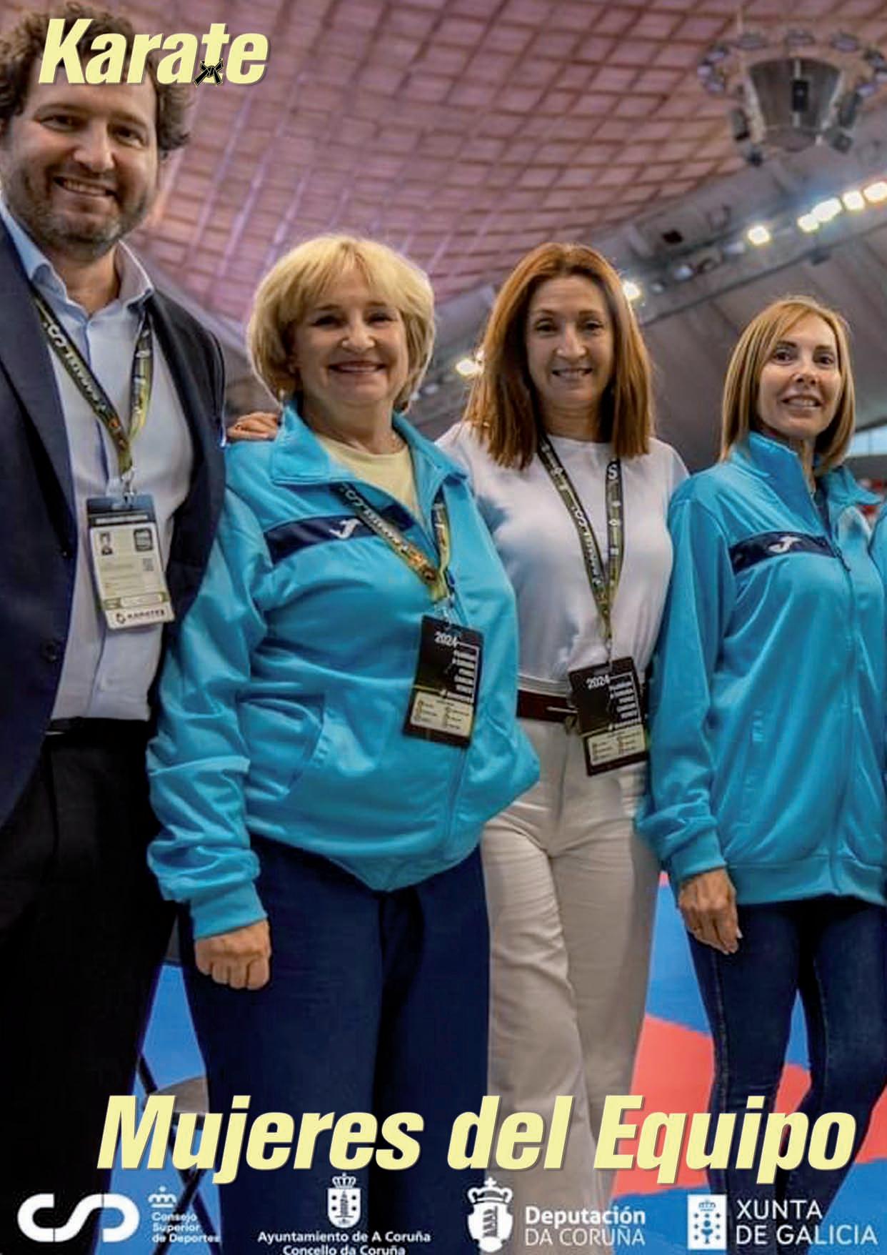 Las mujeres del Equipo RFEK empujan la Celebración de los Eventos del Karate. Este equipo de mujeres trabajó durante meses para que la Youth league de karate de A Coruña, con 3000 participantes tuviera un éxito rotundo. Muchas más quedan sin rostro detrás de esta foto en la que están representados los departamentos de gestión, administración, organización, protocolo y comunicación. La RFEK apuesta por la presencia de las mujeres en todos los puestos de responsabilidad.