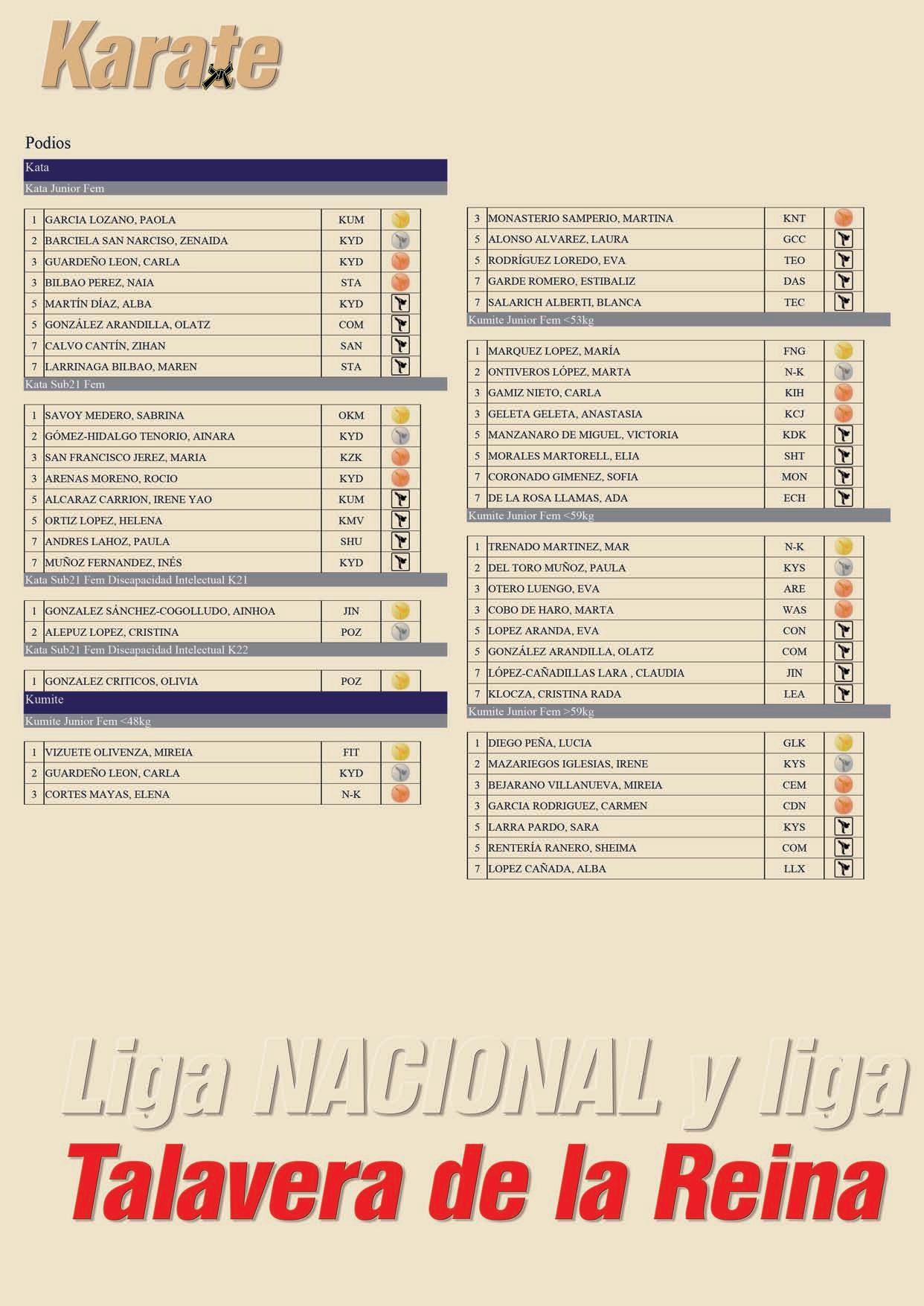 -I Liga Nacional en Santiago de Compostela 2022 (alevín, infantil y juvenil) conseguimos 6 pódiums y nos colocamos los terceros en el Ranking Nacional Femenino y 2º Club con más medallas en chicas. Campeona Kumite Infantil Femenino (Julia Melgar Postigo), Campeona Kumite Alevín Femenino (María del Mar Trujillo Carrillo), plata Kumite Alevín Femenino (Cristina Muñoz Macías), bronce Kumite Alevín Femenino (Claudia Garzón Reina), bronce