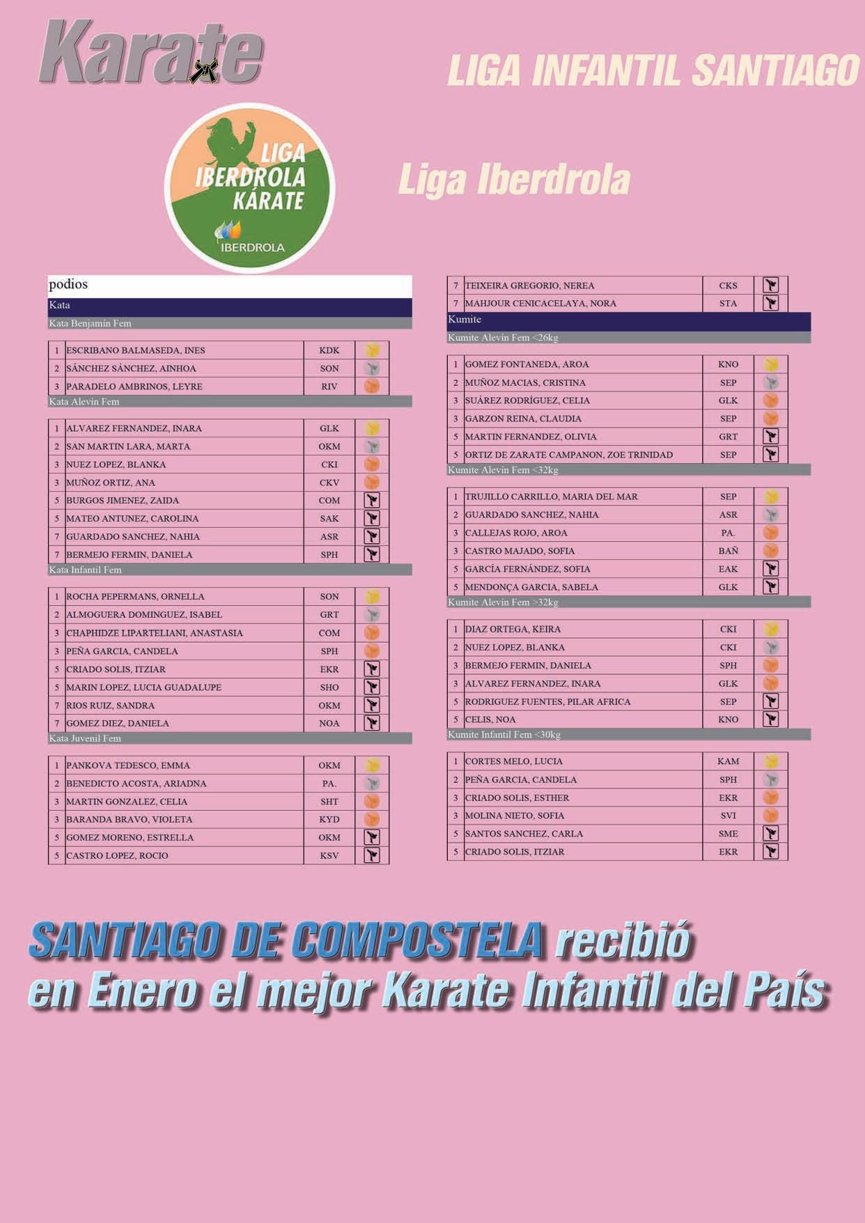 Kumite Juvenil Femenino (Candela Muñoz Beltrán) y bronce Kumite Infantil Masculino (Enrique Rodríguez Fuentes) mas 3 cuartos puestos, recorrido ida y vuelta CeutaSantiago de Compostela 2052 km