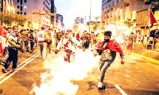 despojó a Castillo de la inmunidad presidencial mientras enfrenta cargos de “violación de la constitución”. Los manifestantes acusan a Boluarte, el vicepresidente de Castillo que asumió el cargo pocas horas después de su destitución, de traicionar al exlíder y usurpar la presidencia. Los manifestantes en la capital, Lima, se unieron a miles en todo el país para enfrentarse a la policía antidisturbios que usó gases lacrimógenos y porras para hacerlos retroceder.