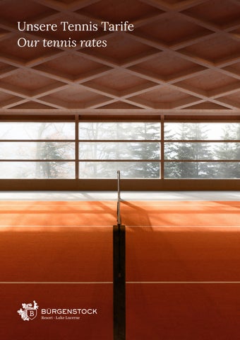 — Die Bürgenstock Diamond Domes bilden eine beeindruckende architektonische Bühne für Ihr Tennistraining. Tennisschläger- und Bälle können gemietet werden. Gäste werden aufgefordert sich vor dem Spiel beim Tennis Desk anzumelden. Stornierungen müssen mindestens 24 Stunden vor Spielanfang gemeldet werden. Im Falle eines Nichterscheinens werden alle Kosten in Rechnung gestellt.