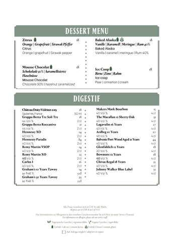 OAK Grill & Pool Patio | Dessertkarte – Dessert Menu DE & EN
