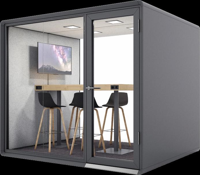 Offerieren Sie Sicherheit, auch nach der Corona Pandemie. Bieten Sie einen Rückzugsort für konzentriertes Arbeiten, für sensible Telefonate und die kleine Erholungspause zwischendurch. Profitieren Sie und Ihr Team von der hervorragenden Schallisolation, Schallabsorbation und einer Frischluftversorgung durch einen Hochleistungslüfter.